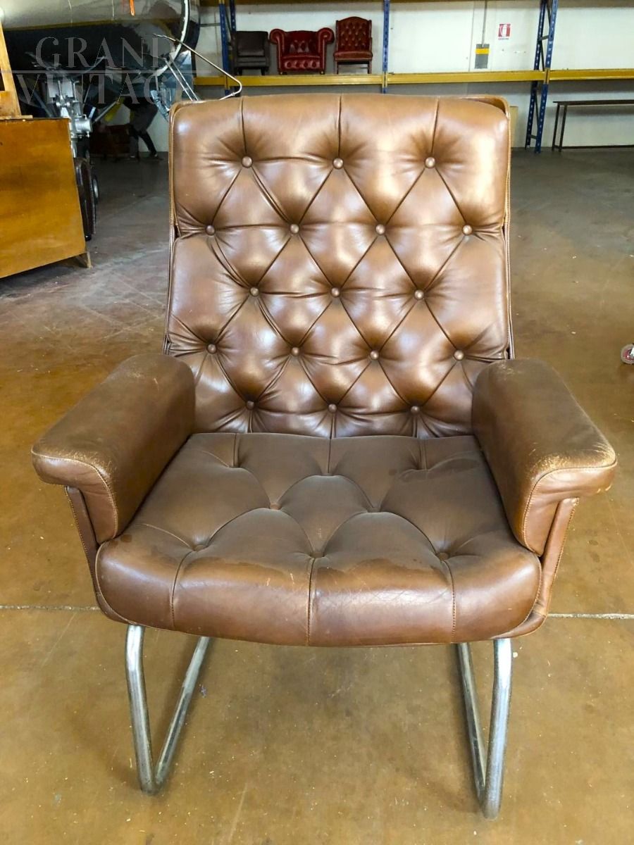 Directional vintage armchair in capitonné leather