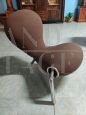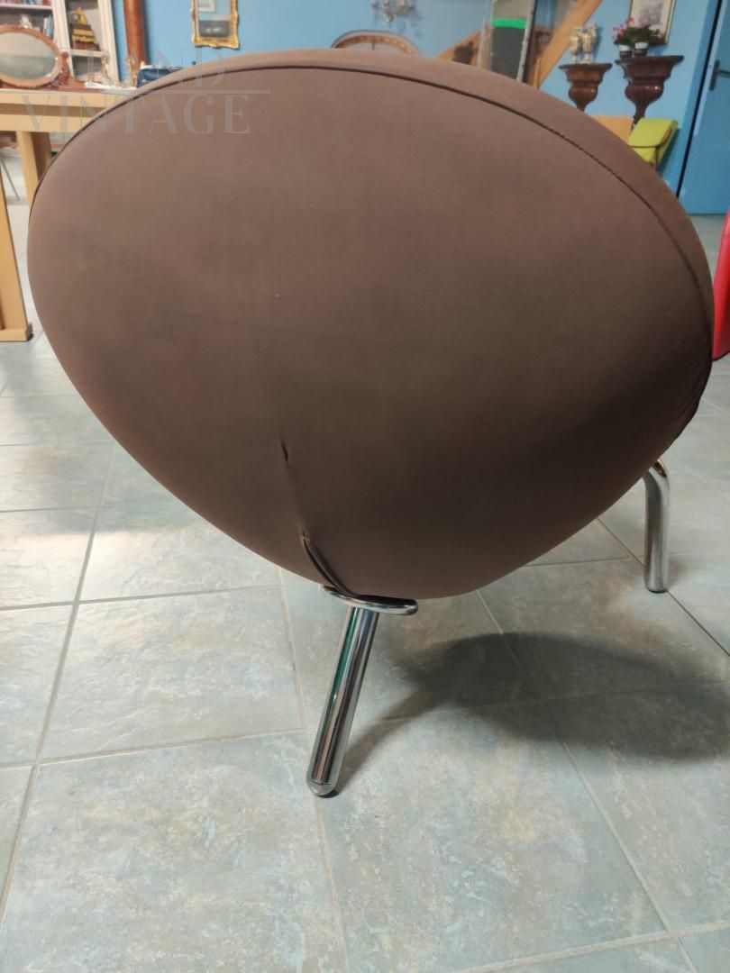 Designed by Marc Newson, the Embryo Chair is a three-legged seat with chromed steel structure and foam polyurethane padding.
