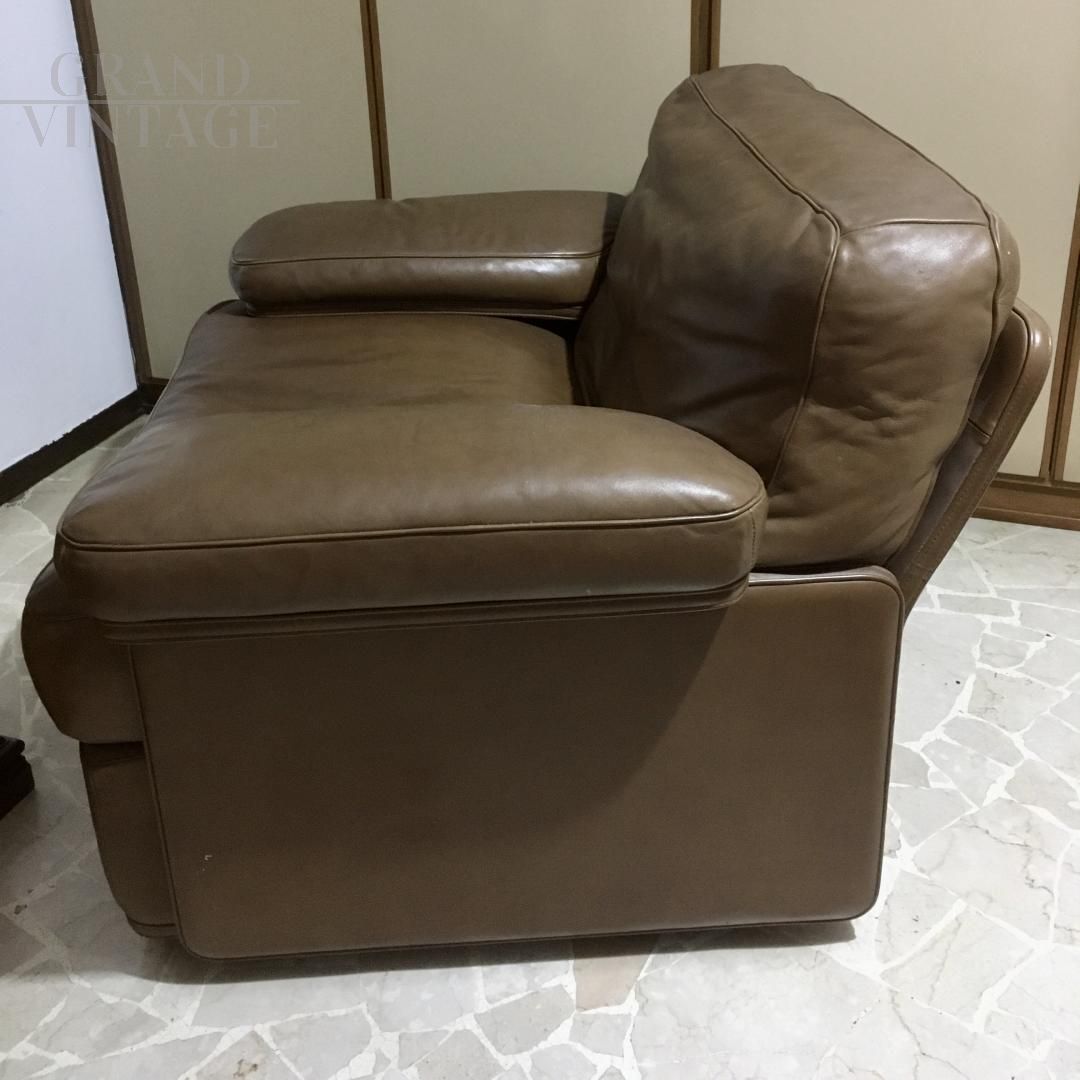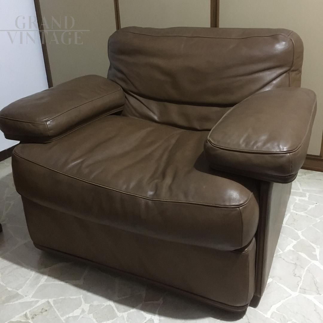 Original Poltrona Frau armchair in brown leather, in excellent condition. There are no scratches, no abrasions or obvious signs of wear on the upholstery. The consistency of the cushions is similar to that of the factory condition, given the low use.