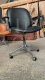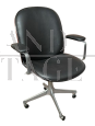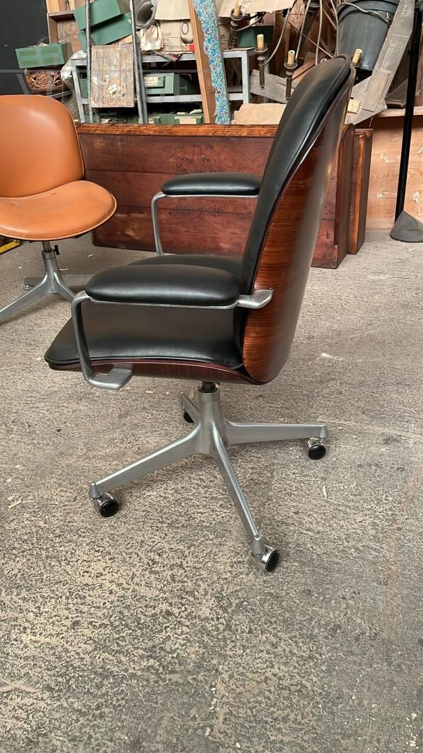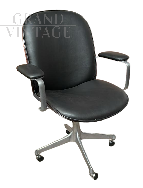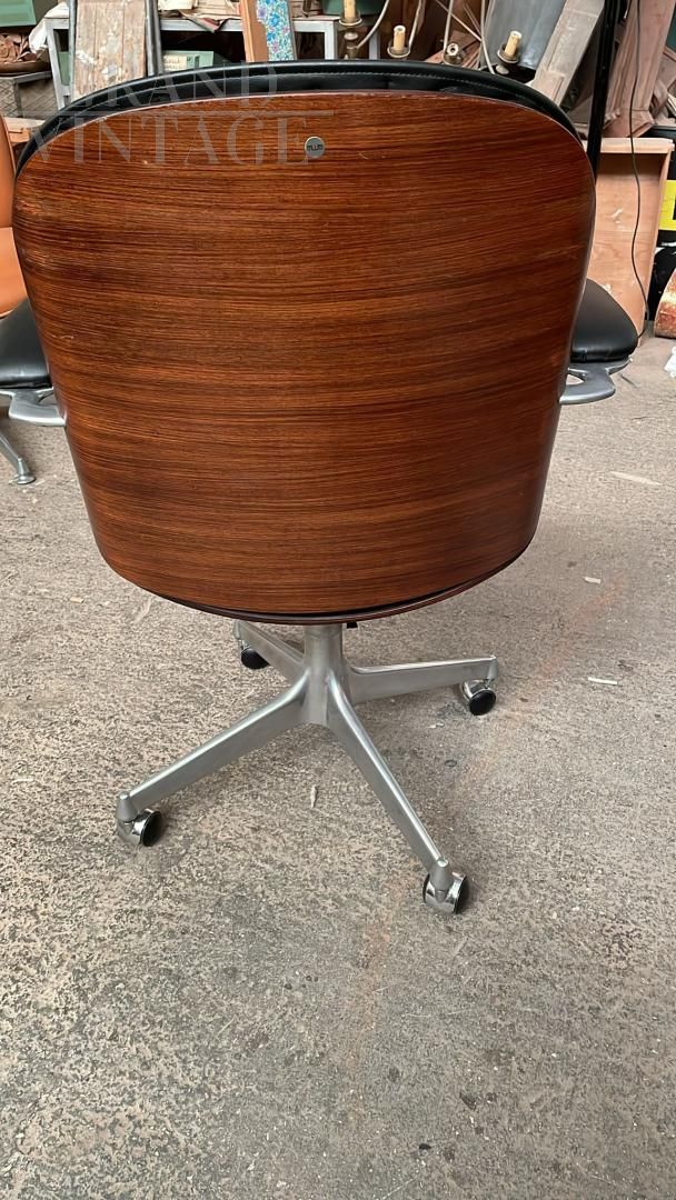 Splendid MIM swivel office armchair in leather and rosewood with castors, Italy from the 1960s, in excellent condition.