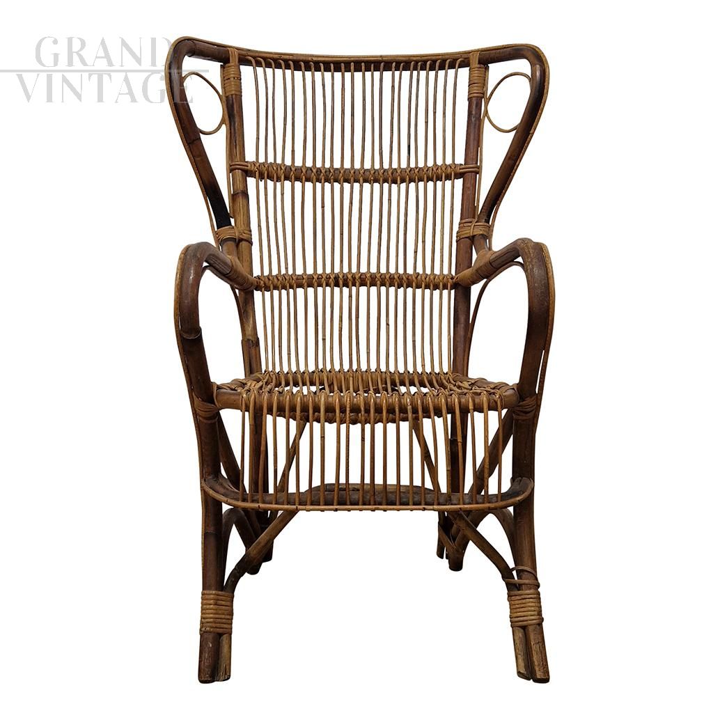 Armchair in bamboo and rattan with a particular and elegant curled workmanship.