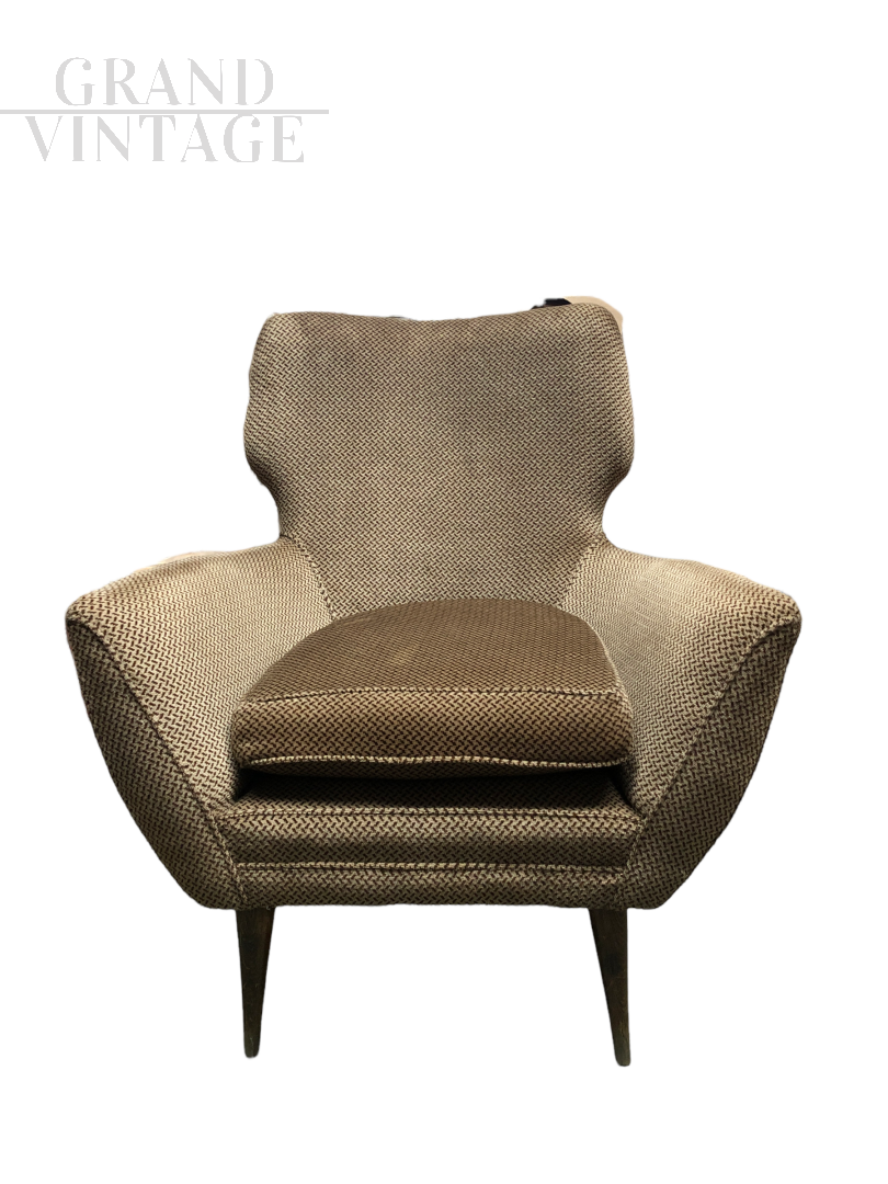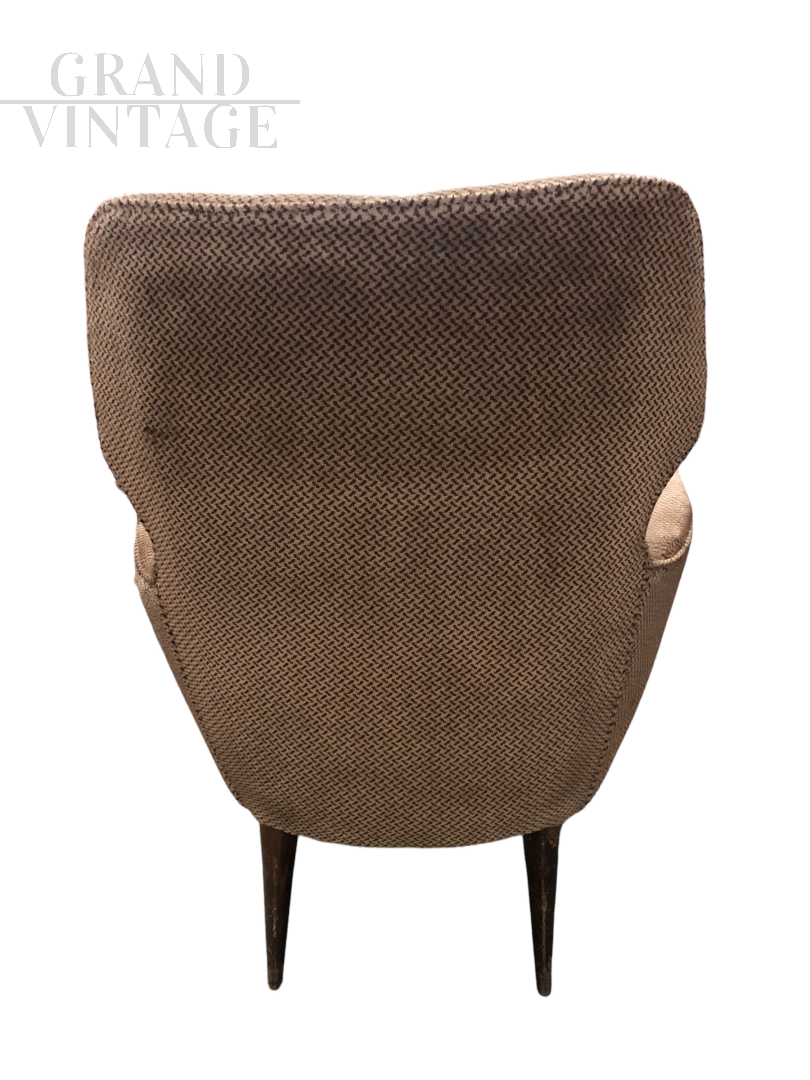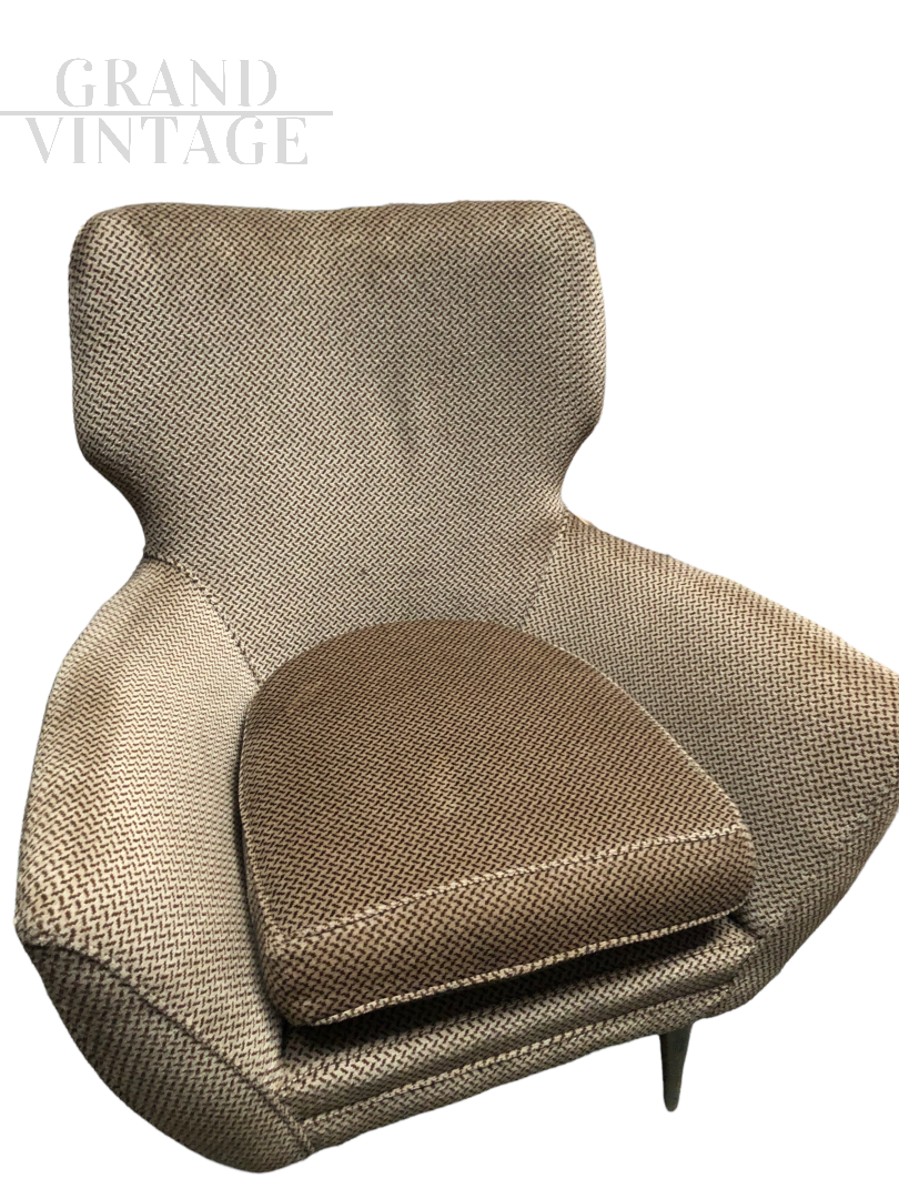 Art Deco armchair in beige and brown patterned velvet, the pair is available.