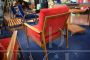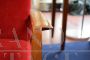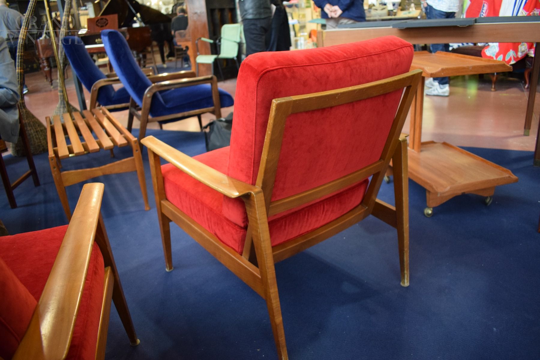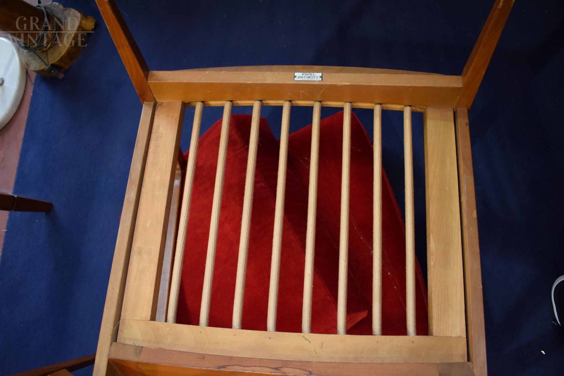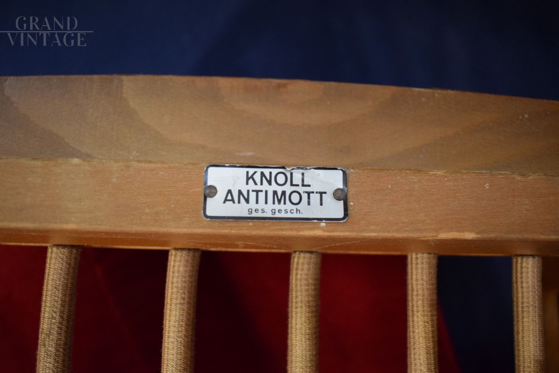 Pair of armchairs designed by KNOLL ANTIMOTT from the 50s produced in cherry wood. New red velvet and padding.