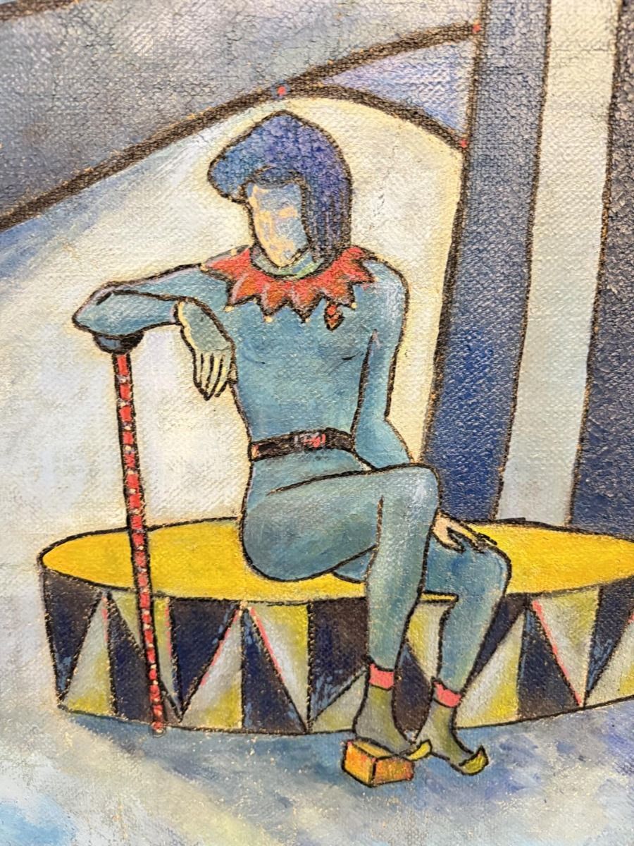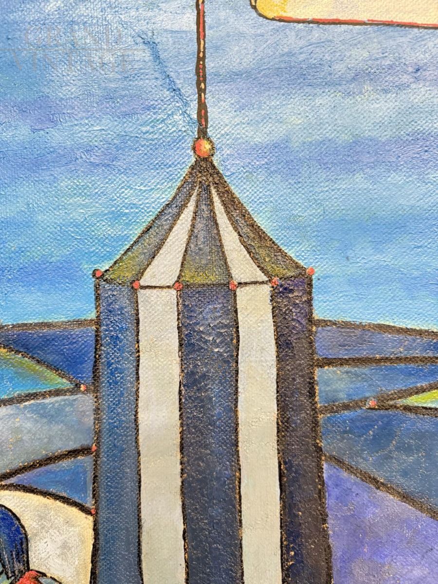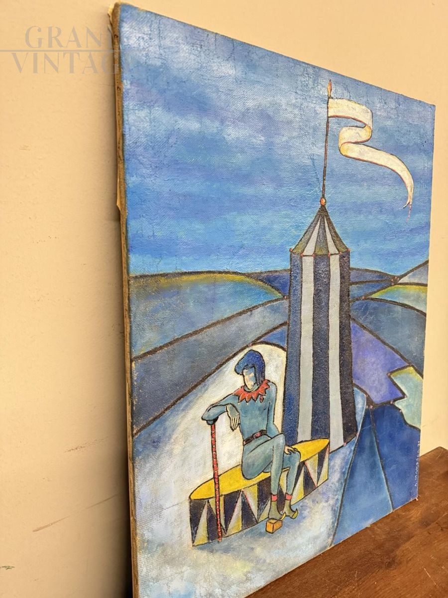Modern and contemporary art polychrome enamel painting with circus theme, signed and dated Maresca '71, measuring 76 x 59 cm. Very good condition.