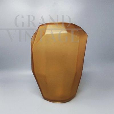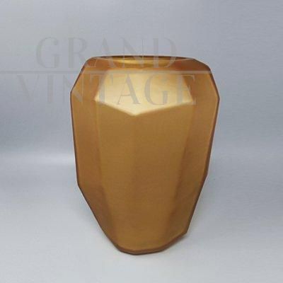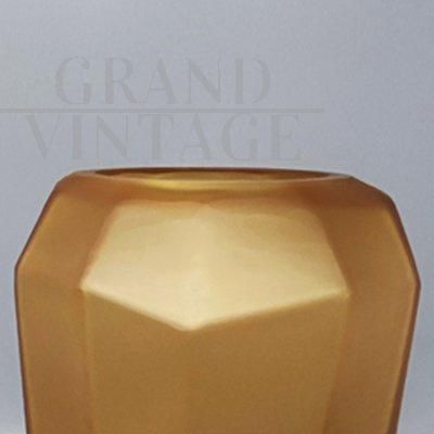 Splendid multifaceted Dogi vase in amber-gold Murano glass, produced in Italy in the 1970s. This vase is in excellent condition.