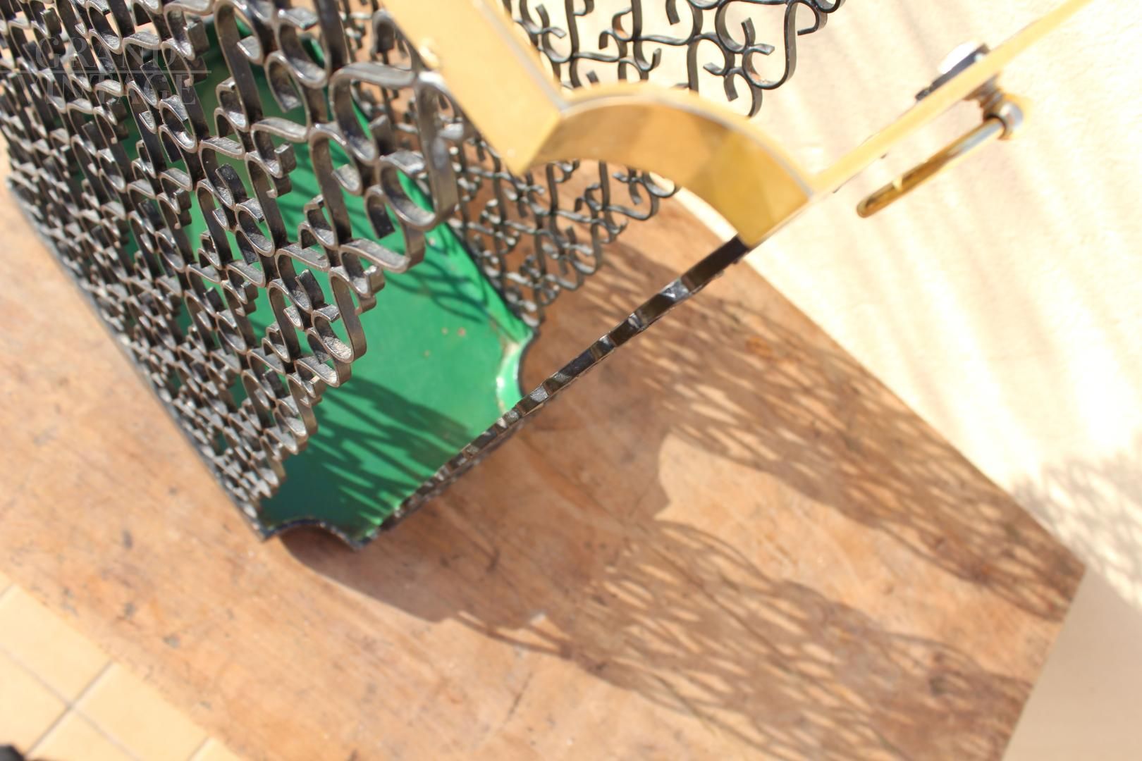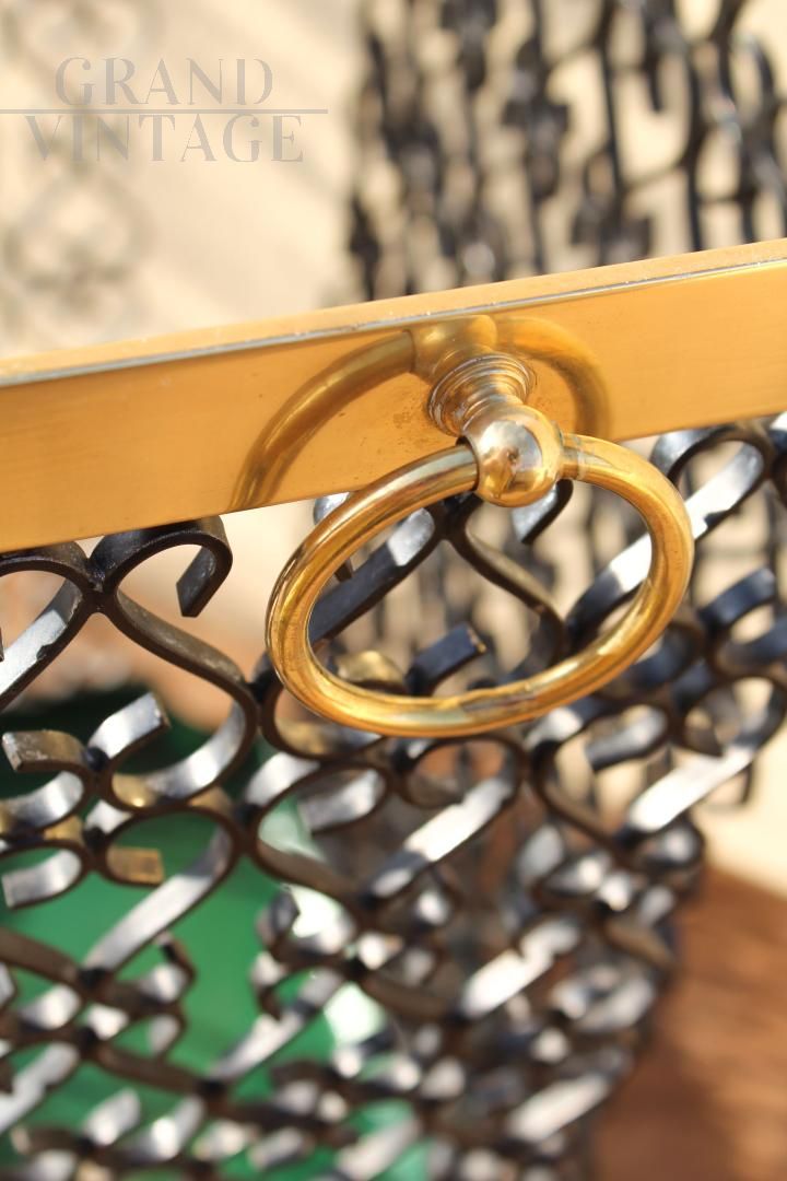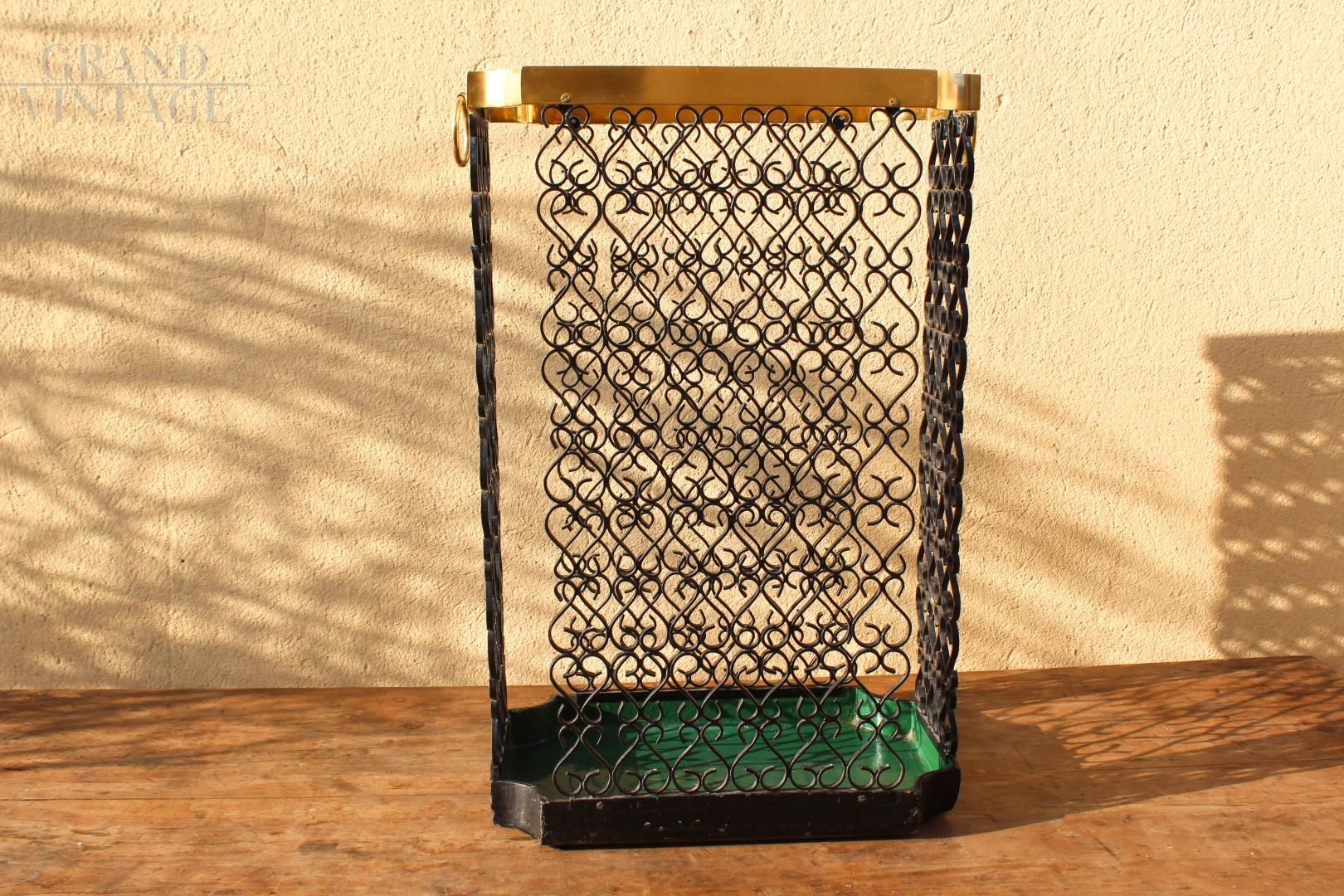Umbrella stand in finely worked wrought iron and brass, Italy 1970s, with 2 round handles, rare and very elegant piece in excellent condition.