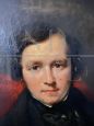 Portrait of a gentleman English school of the 19th century, oil on canvas, complete with frame. It has slight traces of wear on the canvas.