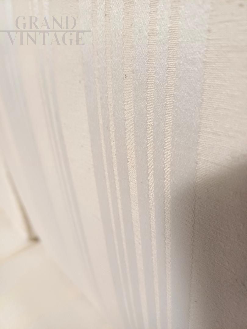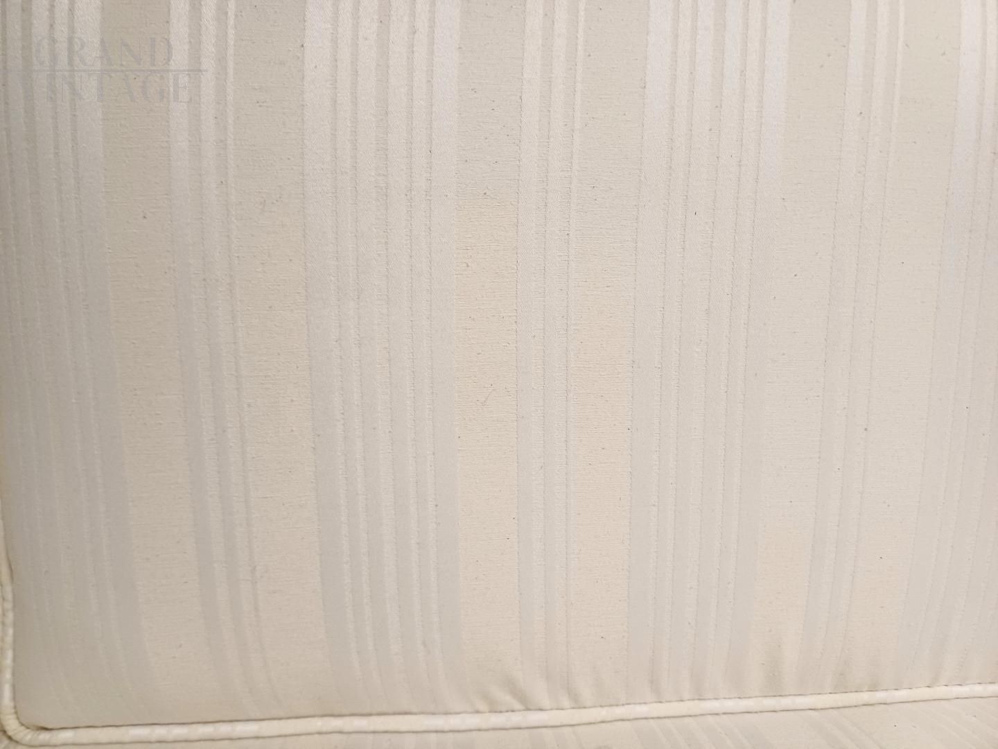 Three-seater walnut briar sofa bed from the war/post-war period. Geometric design with clean, functional lines. Sturdy frame with storage underneath and cushions fully reupholstered in light-colored fabric. Excellent condition, may show minor signs of aging.