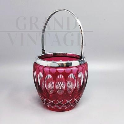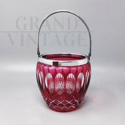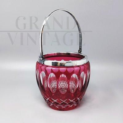 Gorgeous vintage bohemian red cut crystal ice bucket, made in Italy in the 1960s, in excellent condition.
