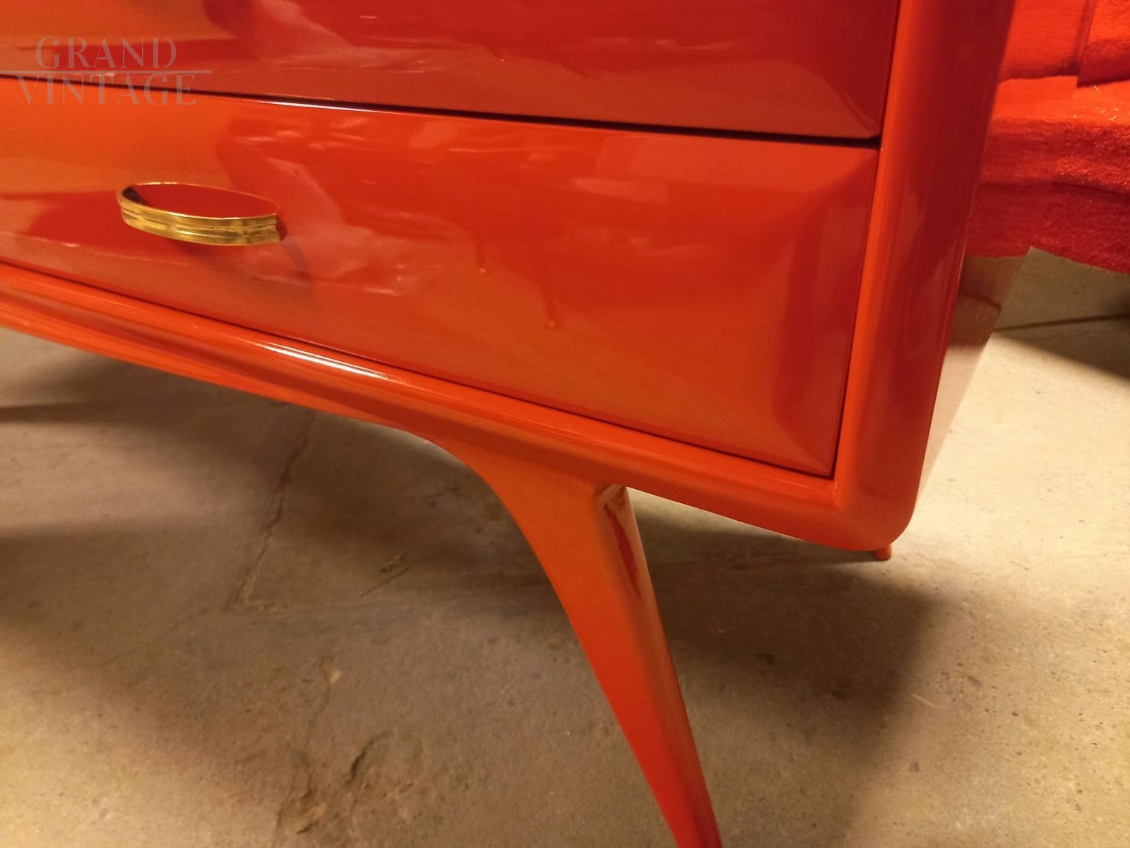 Cassettiera vintage stile Ico Parisi rossa con piano in vetro