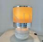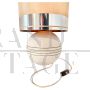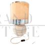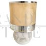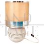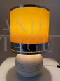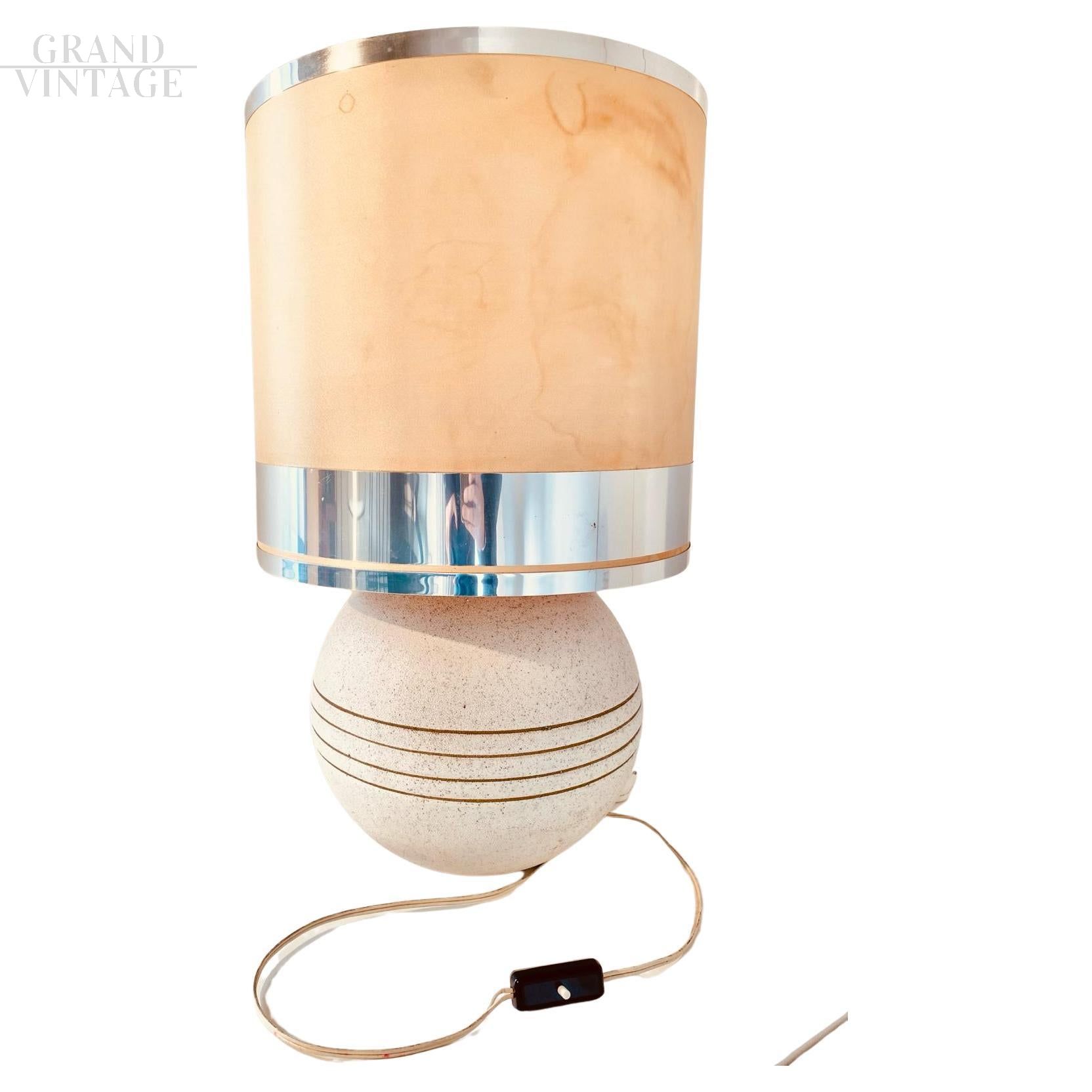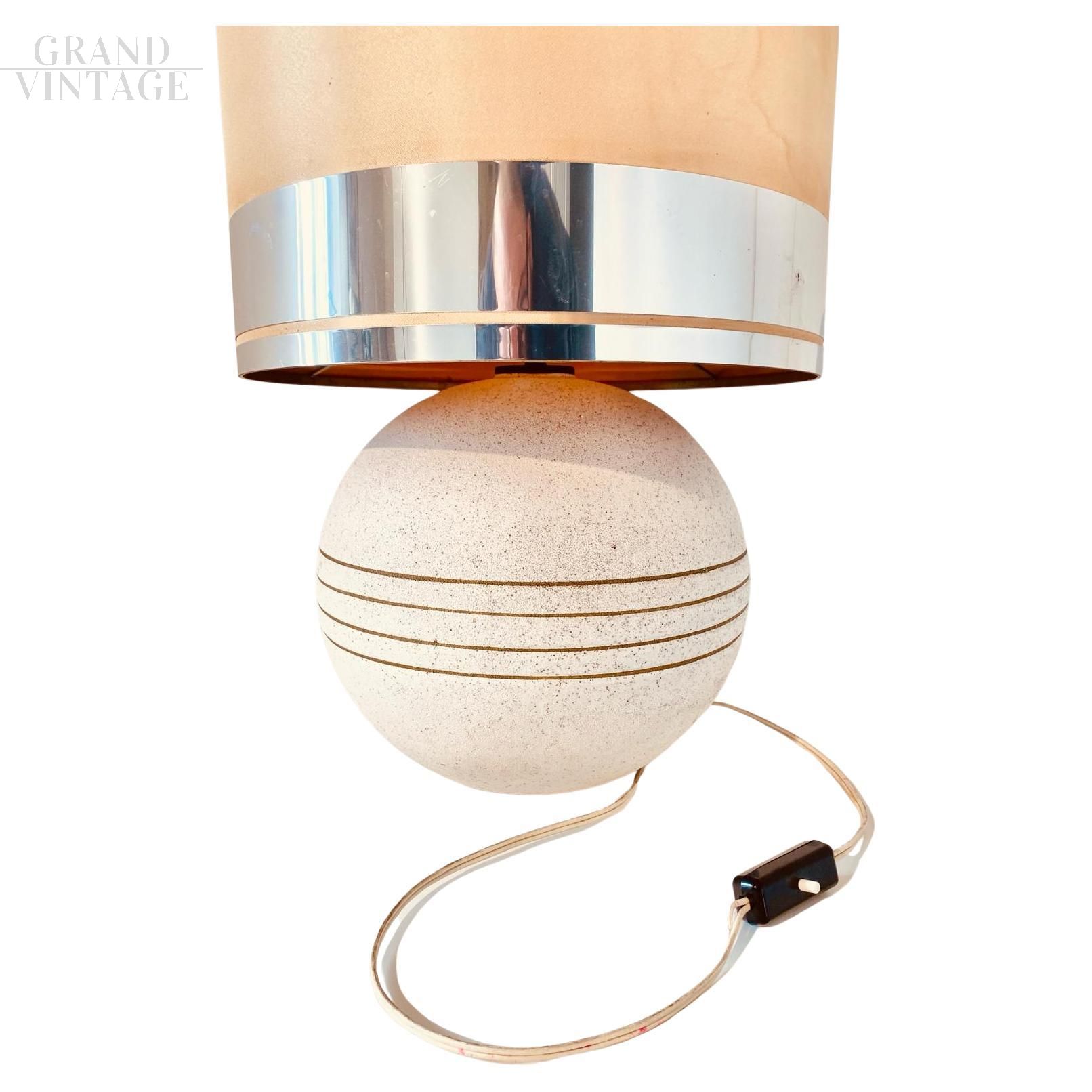 Reggiani ceramic table lamp with canvas lampshade, Italy 1970s, in good condition with signs of wear on the lampshade. Revised and fully functional.