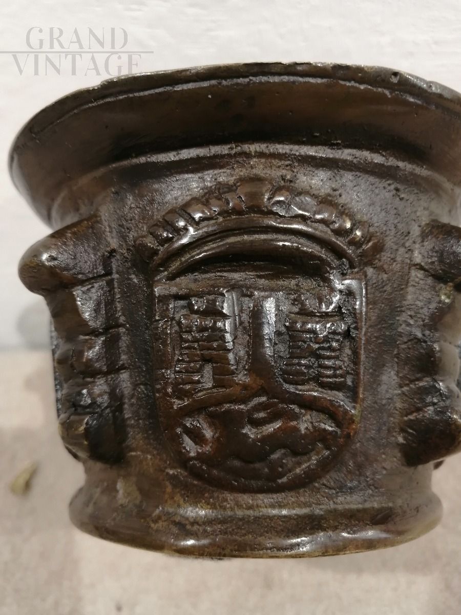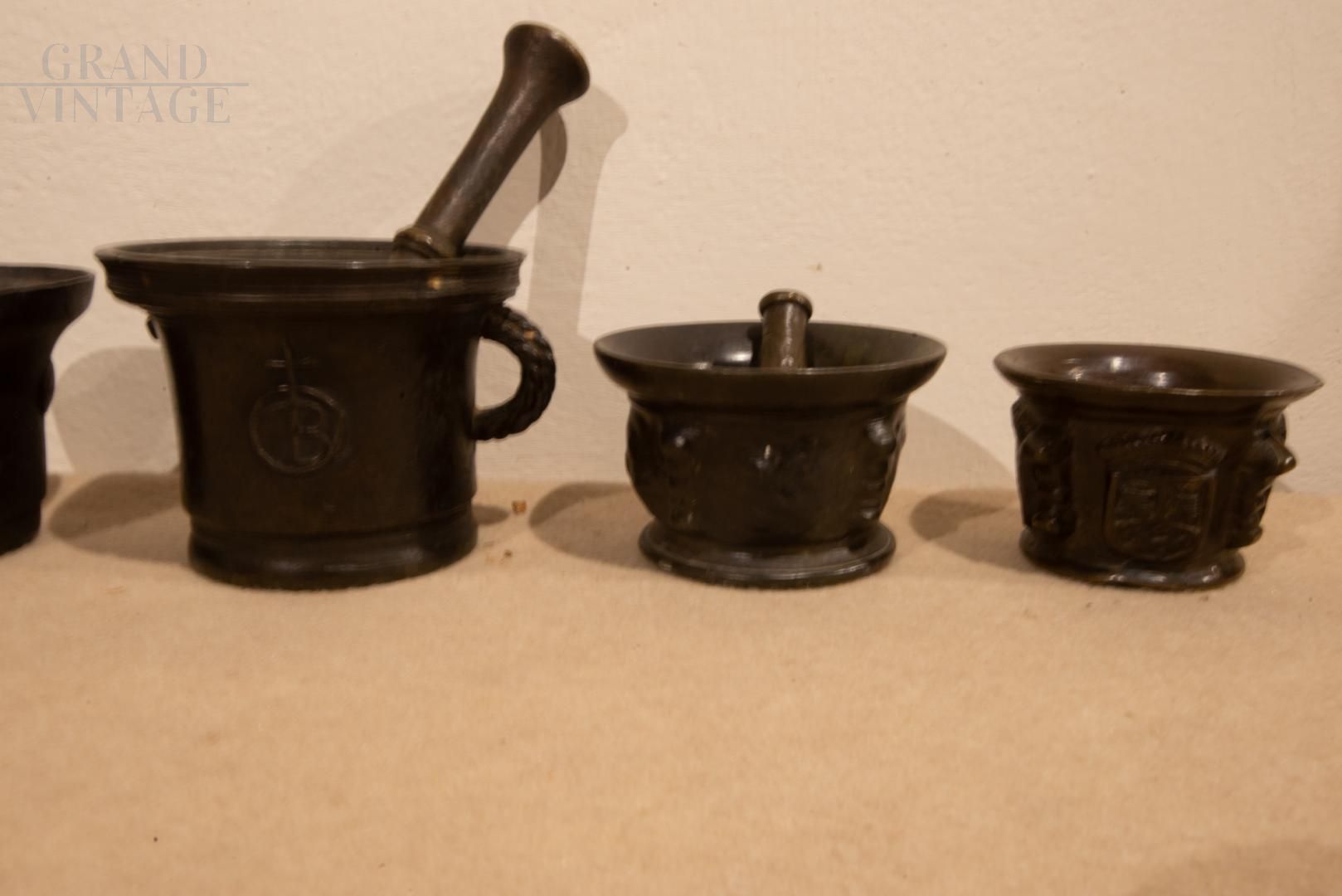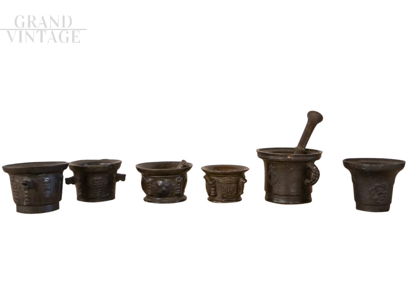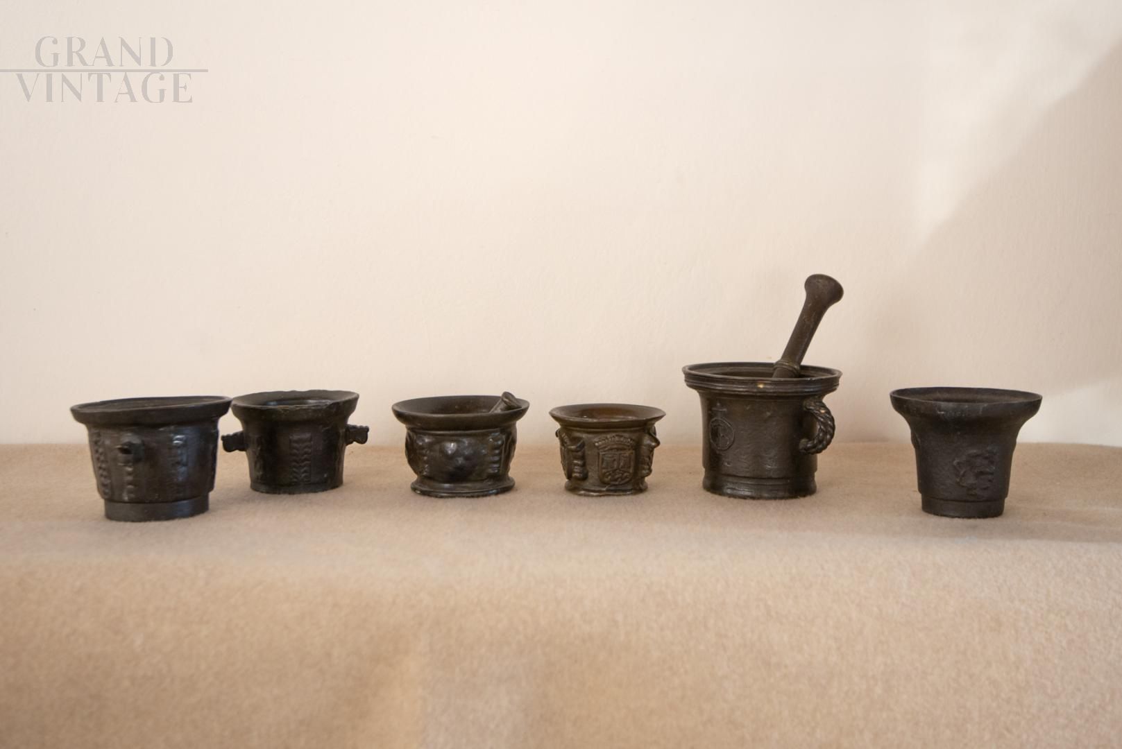 Collection of 6 mortars + 2 pestles, in bronze, Renaissance period.
