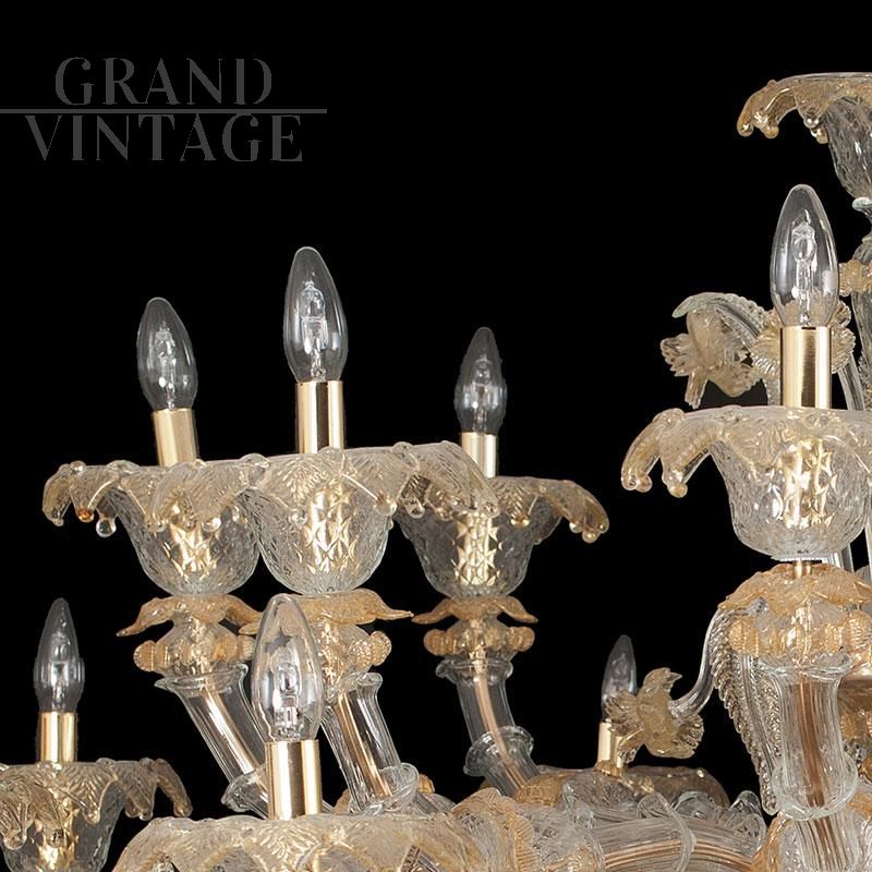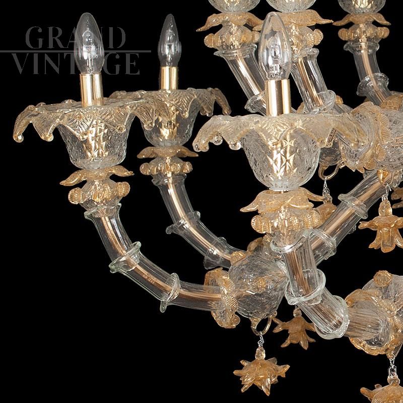 Rezzonico chandelier in crystal and gold Murano glass with 16 lights