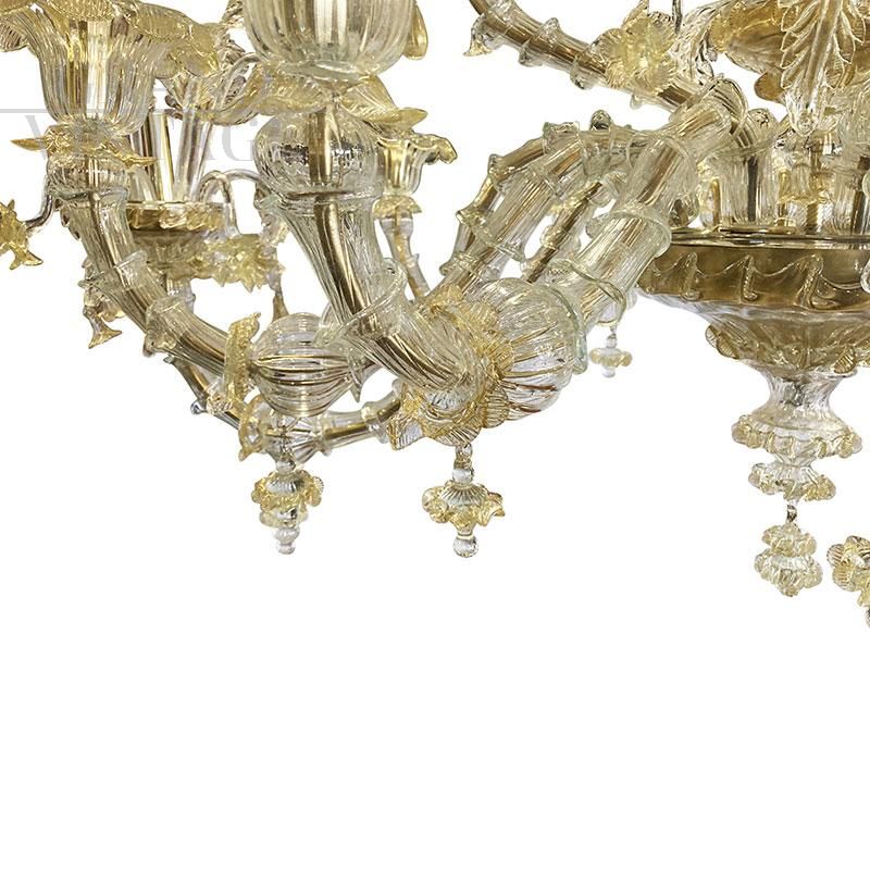 Rezzonico style boat chandelier in golden crystal Murano glass