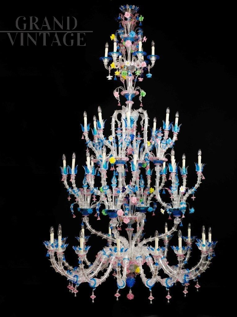 Rezzonico style chandelier in multicolored crystal Murano glass