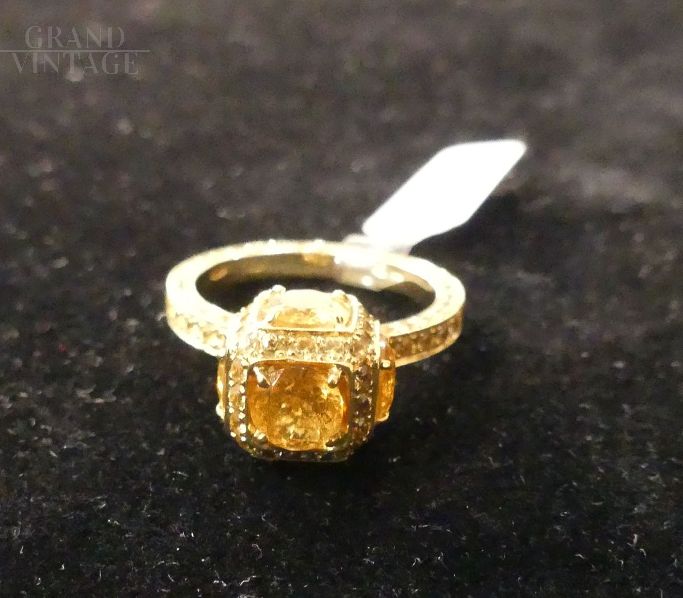 18 kt rose gold ring with orange sapphires of different sizes, equal to 2.50 ct. The ring is marked 581to.
