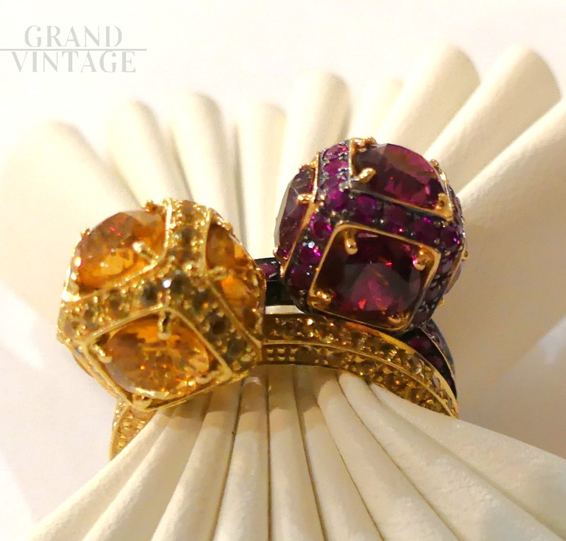 We recommend purchasing combined with an identical ring but with pink sapphires, to create a perfect pair, as shown in the photo.