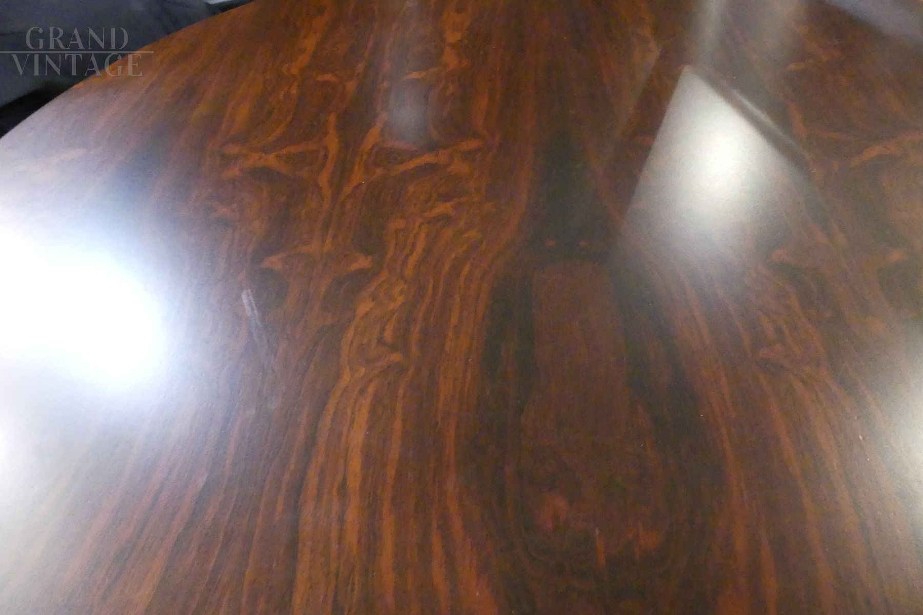 Table designed by Carlo de Carli for Sormani with round top in splendid rosewood and central base in ebonized wood with stepped development. The table is original and in excellent condition.