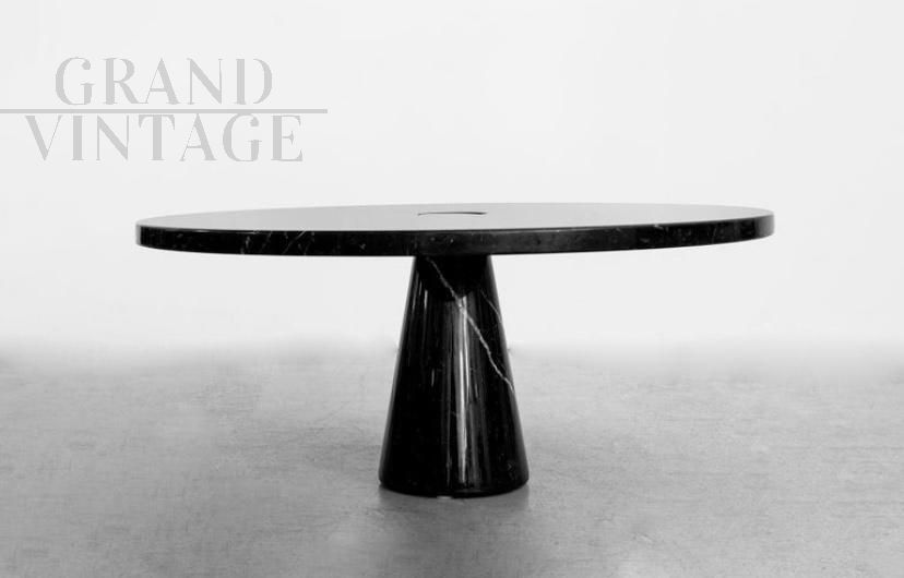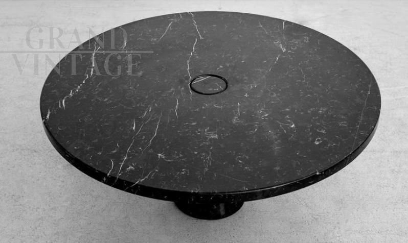 Round dining table by Angelo Mangiarotti Eros series in black Marquina marble