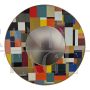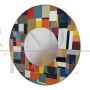 Mirror with round wooden structure, covered in glass tiles, entirely handmade, golden brass profiles.