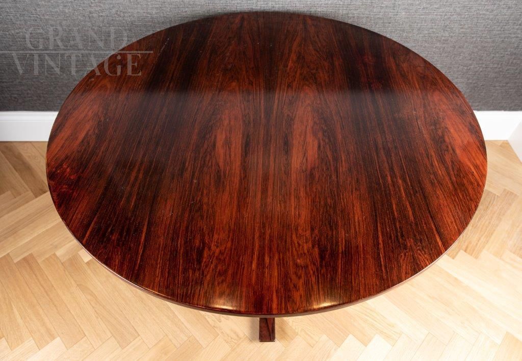 Round table by Gianfranco Frattini for Bernini 522 model, in Indian rosewood, year 1961, in perfect condition.