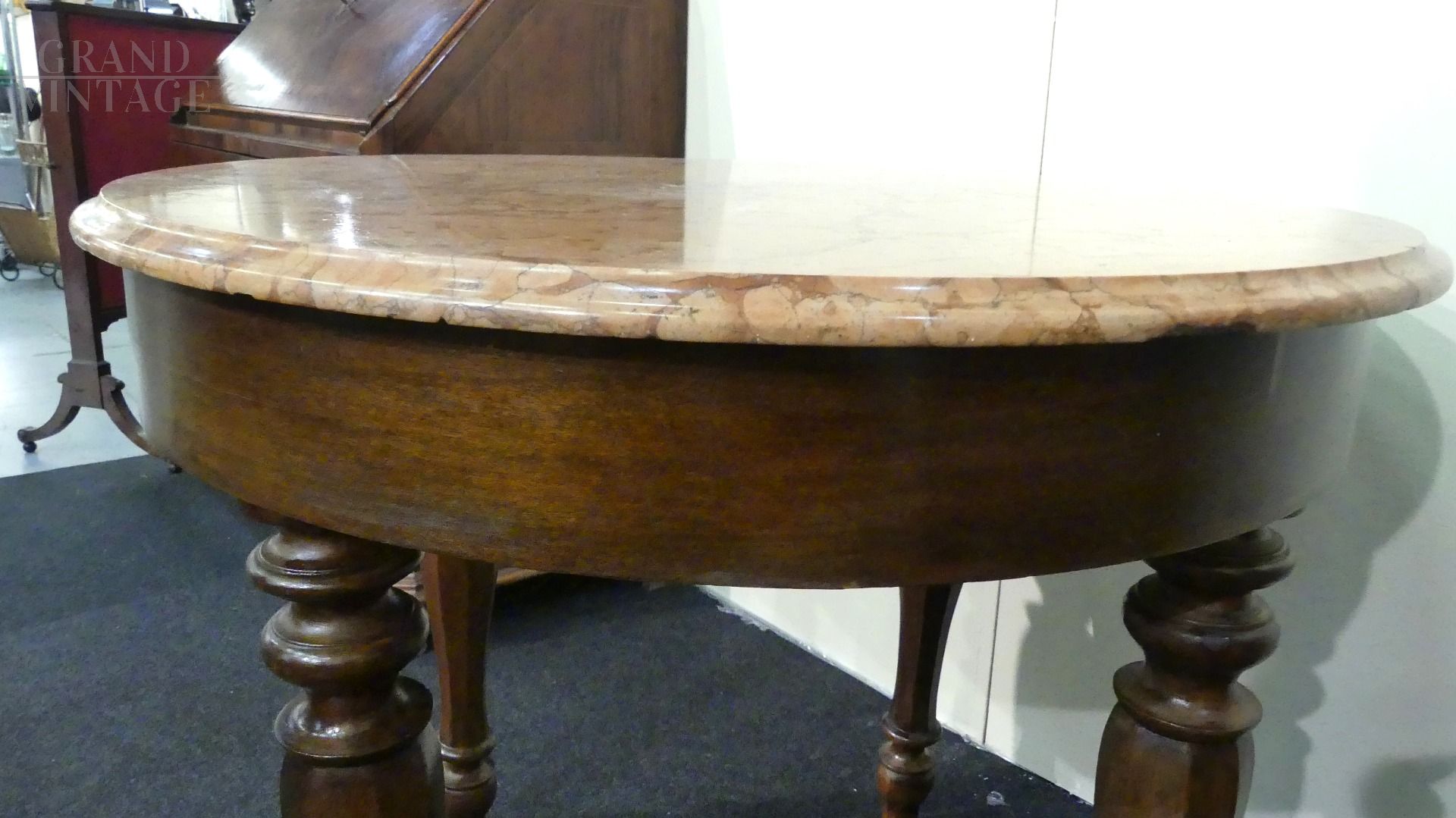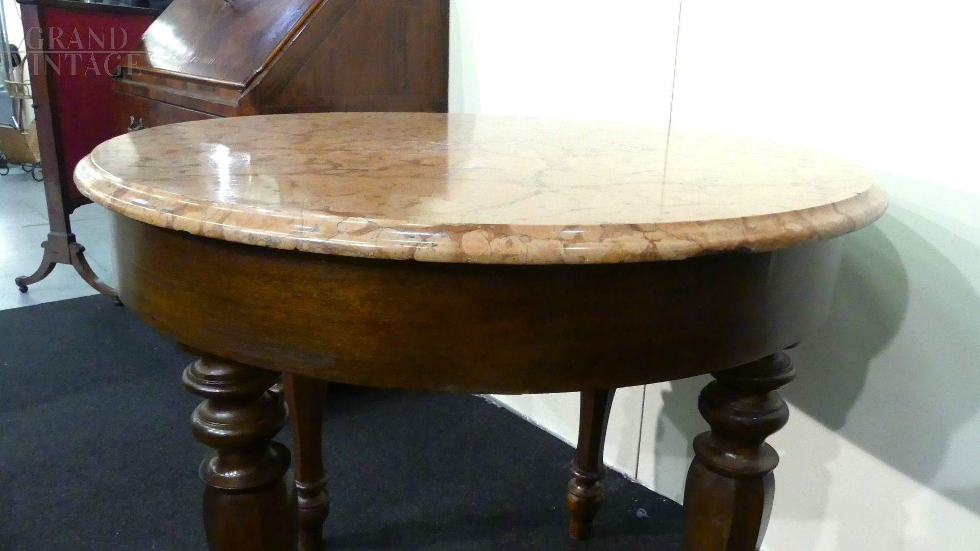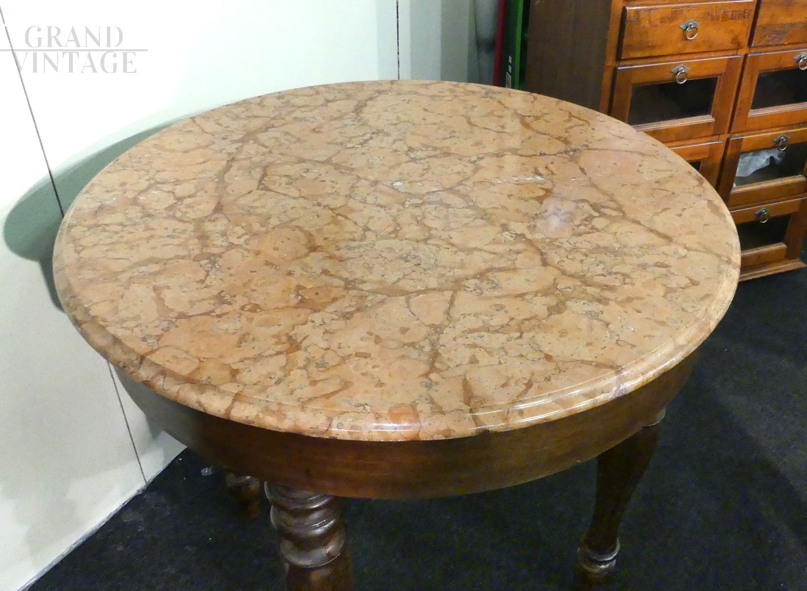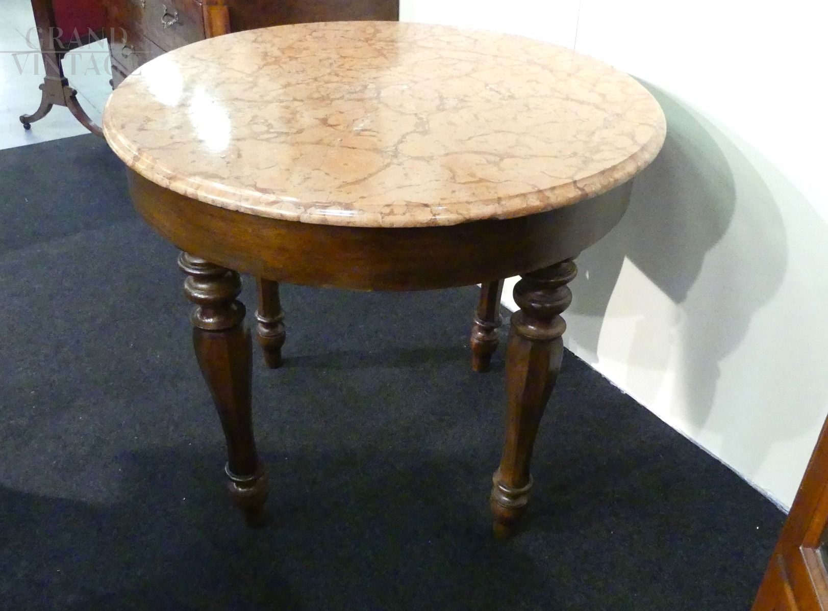 Tavolo rotondo dell'800 con piano in marmo rosa