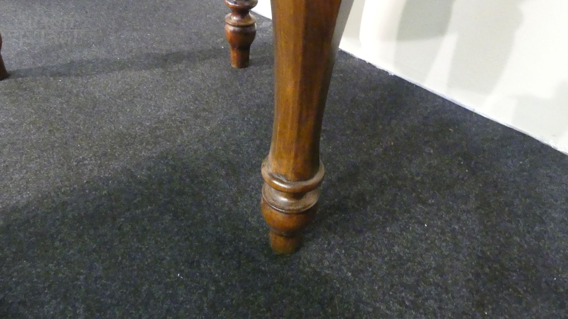 Beautiful 19th century walnut table with pink marble top and turned legs.