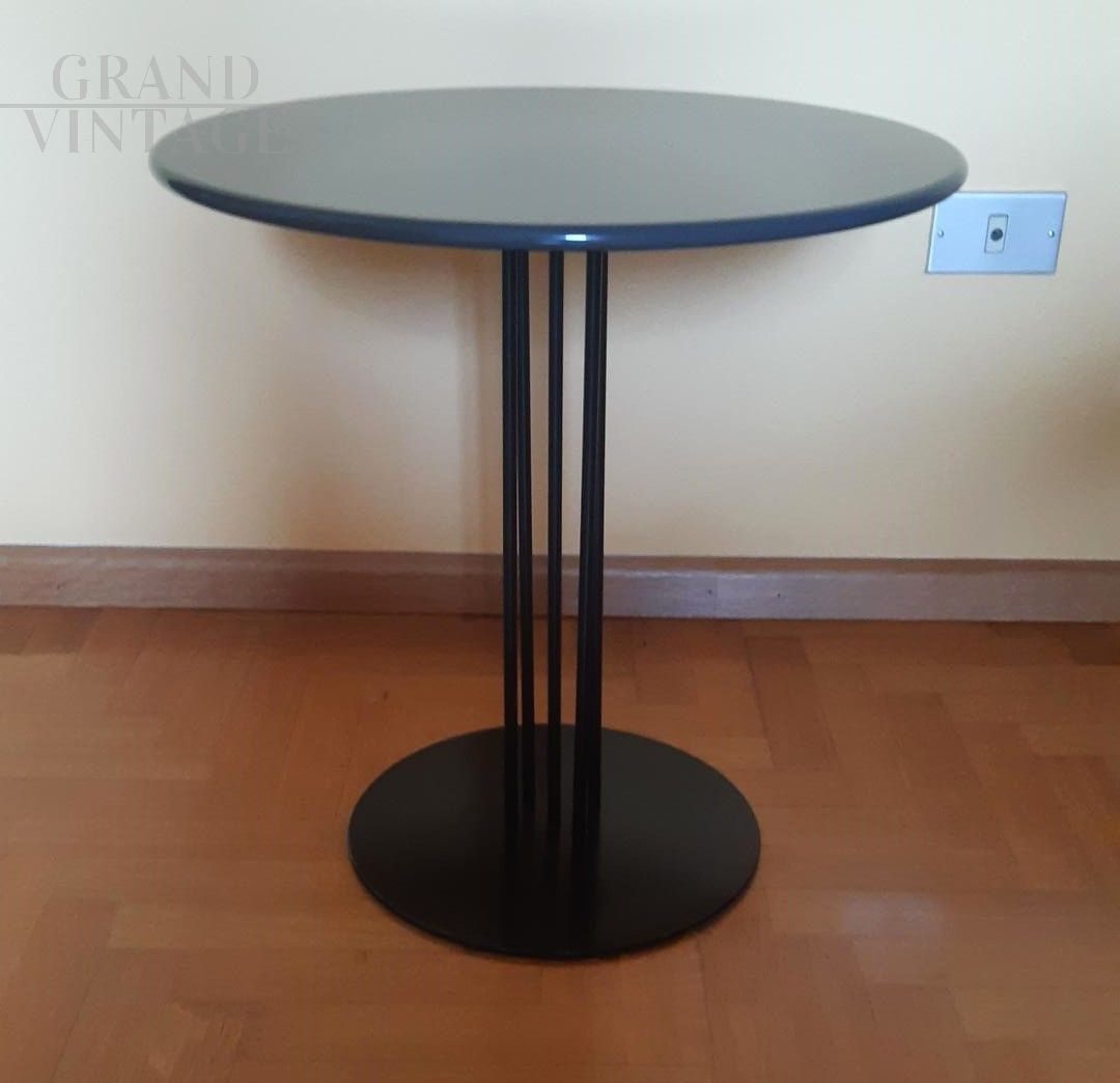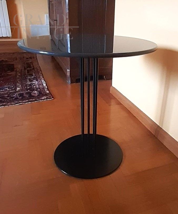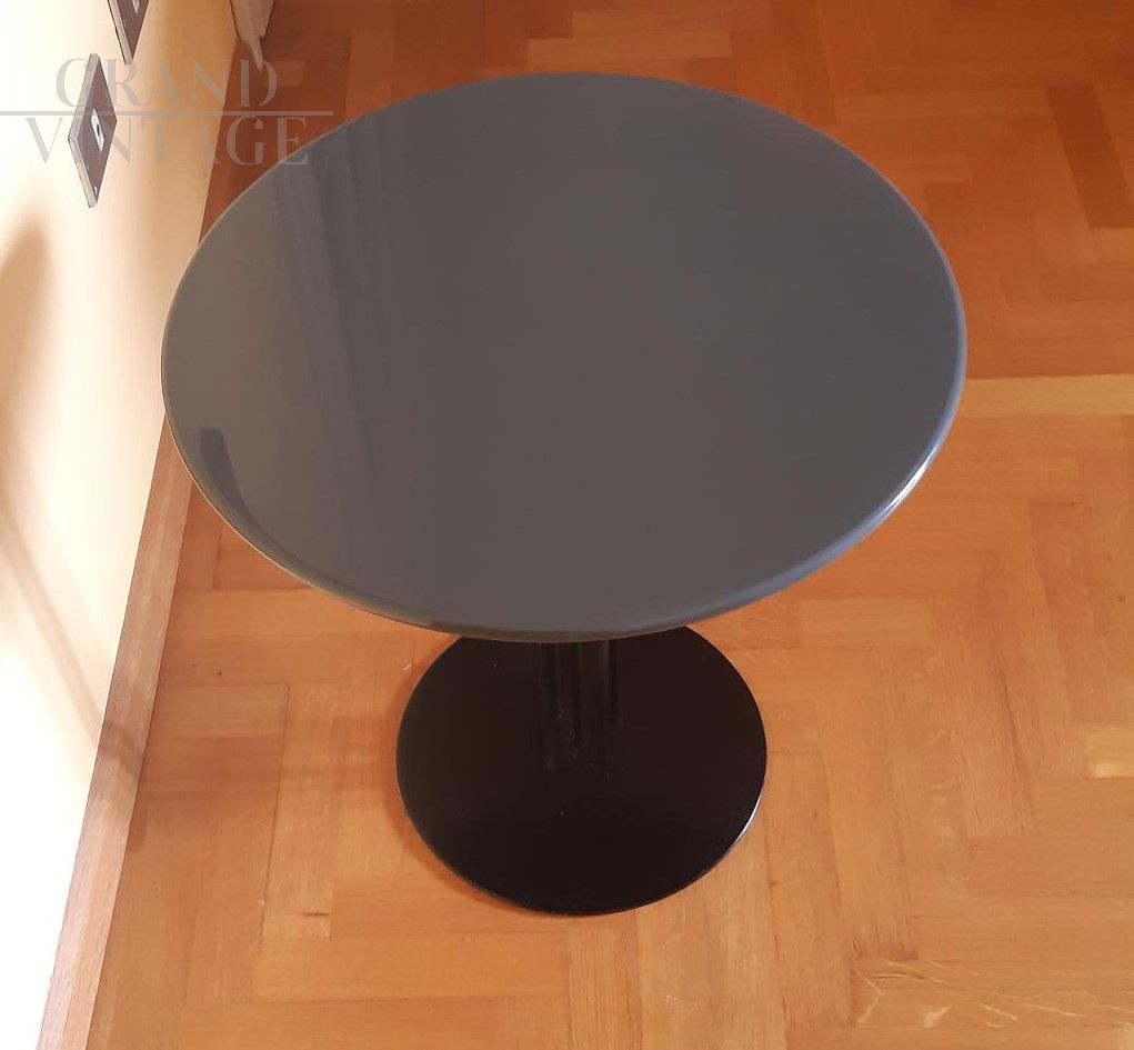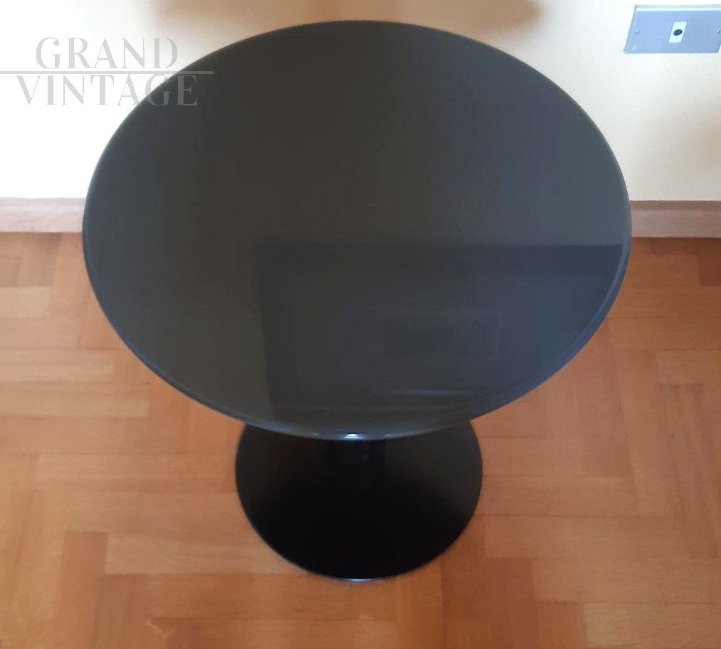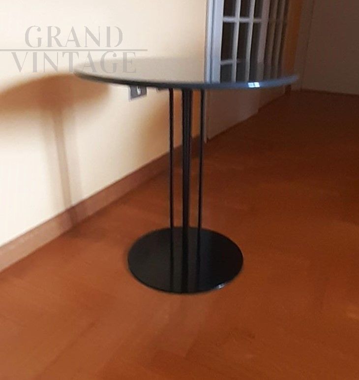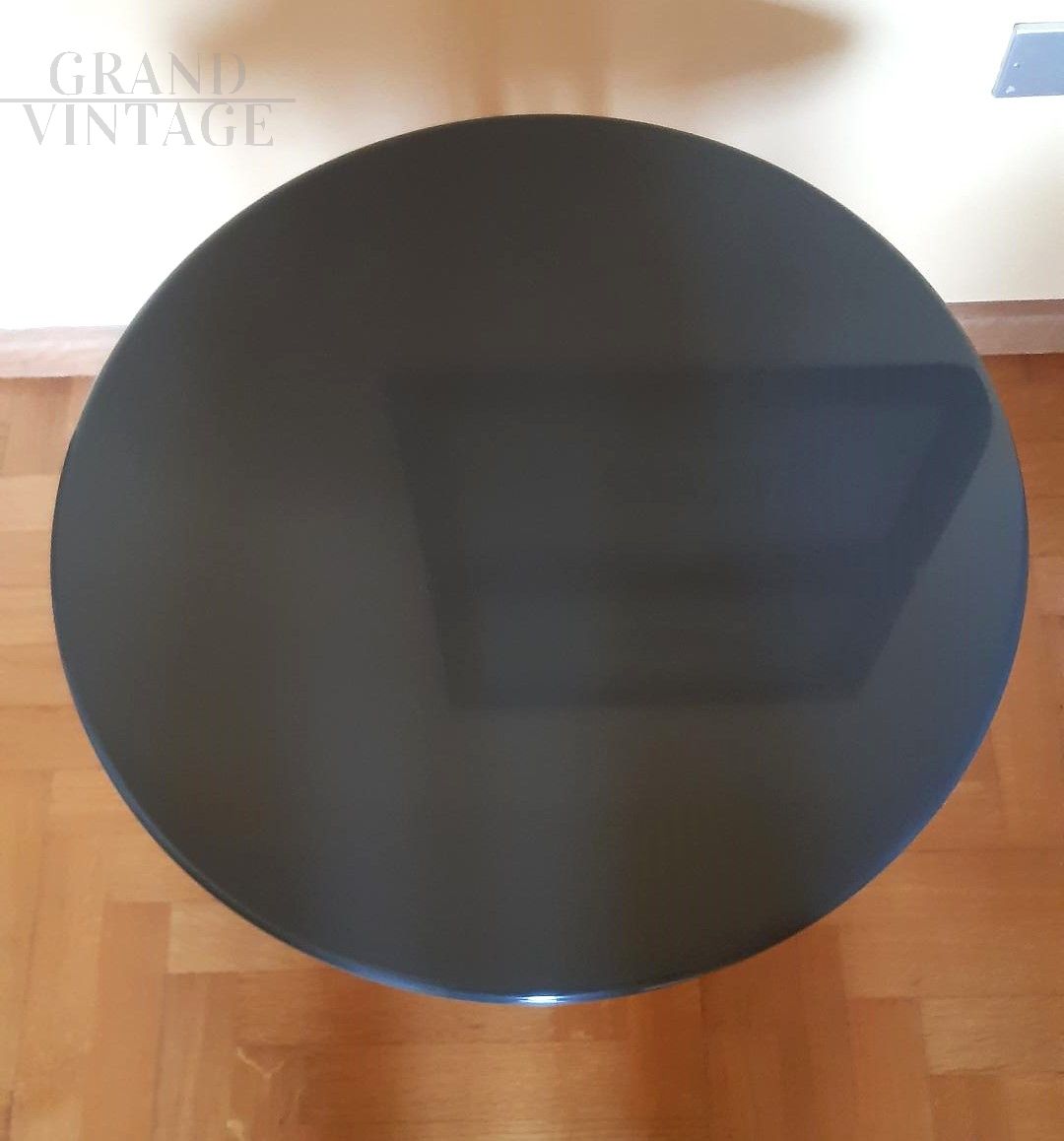 Round vintage side table that can also be used as a bedside table, reminiscent of the design of the Paradiso model by Isimar, functional and versatile thanks to its small dimensions. Crafted for functionality and aesthetics, this modern design fits perfectly into both the living room and bedroom. Its sturdy construction ensures durability, while the elegant shape will add an extra touch to your decor. The coffee table is in good condition, with no evidence of the brand.