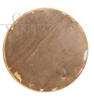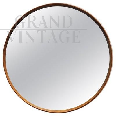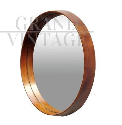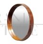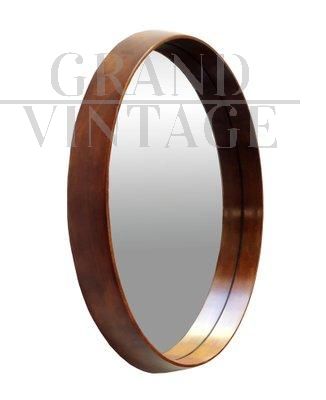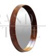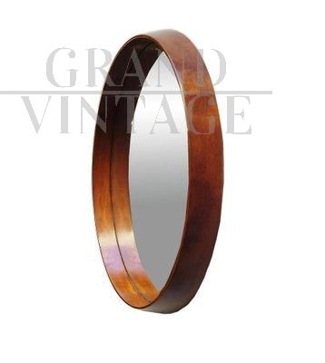 Vintage round wall mirror with curved walnut frame, Italy 1960s.