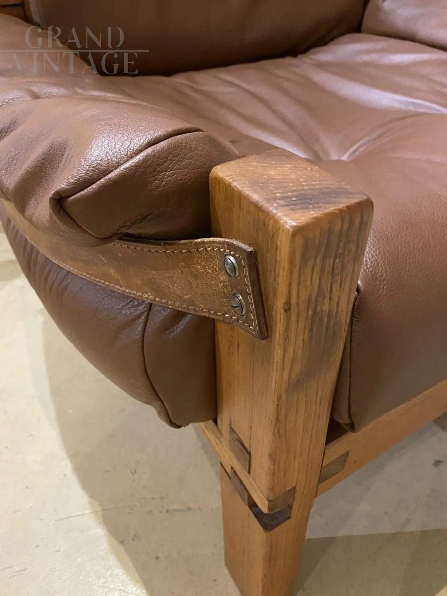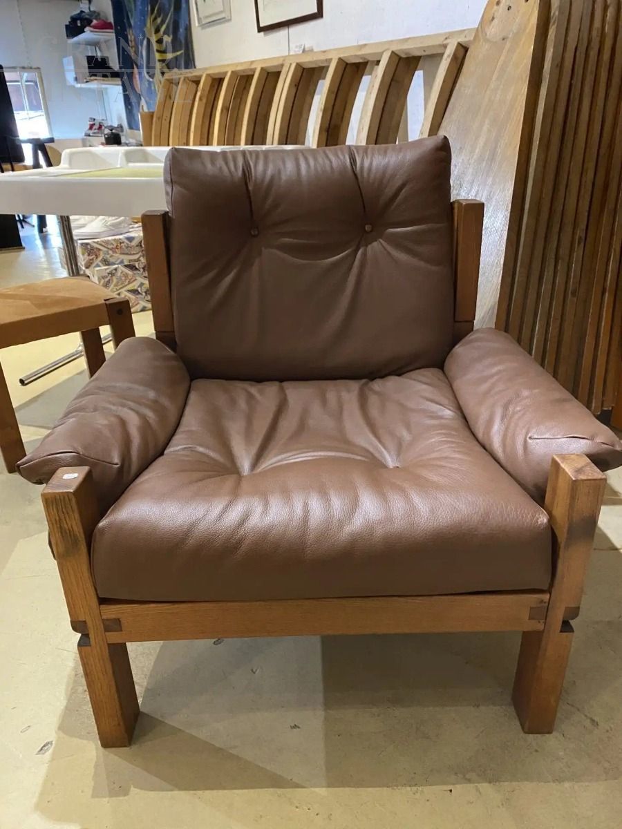 S15 armchair by Pierre Chapo in elm and brown Connolly leather