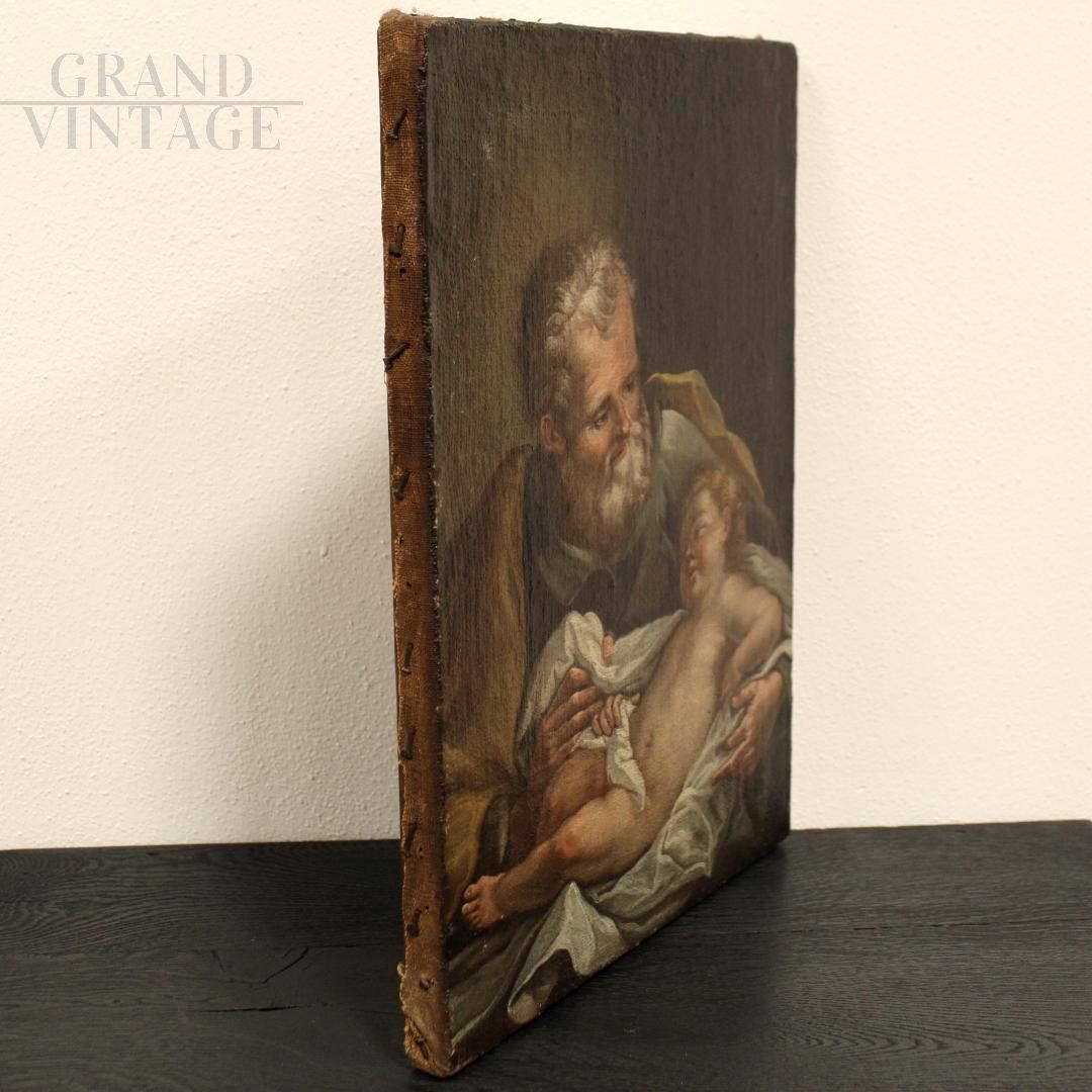 Saint Joseph with Child, oil painting on canvas, Italy 18th century