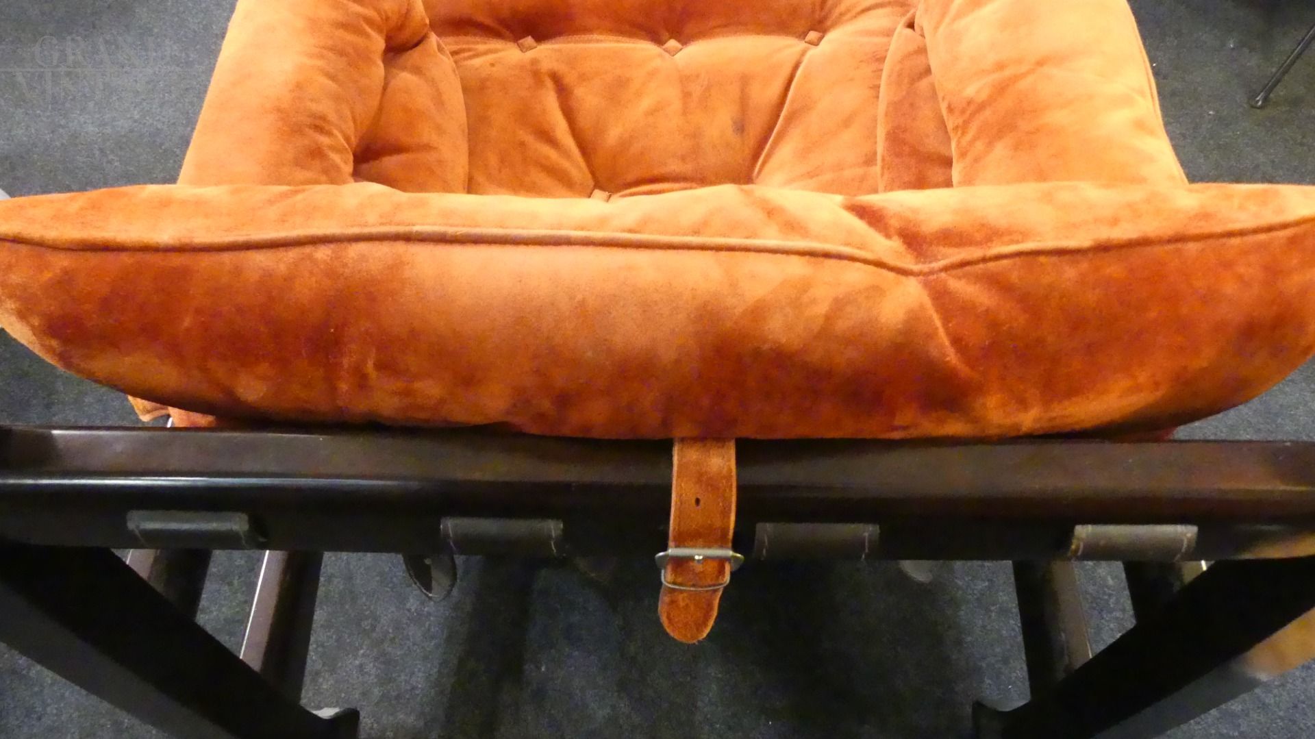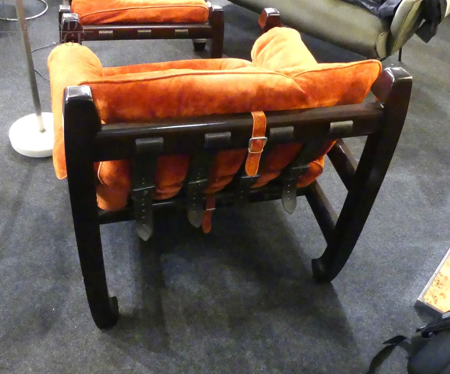 Samurai armchair and ottoman by Frigerio in orange alcantara