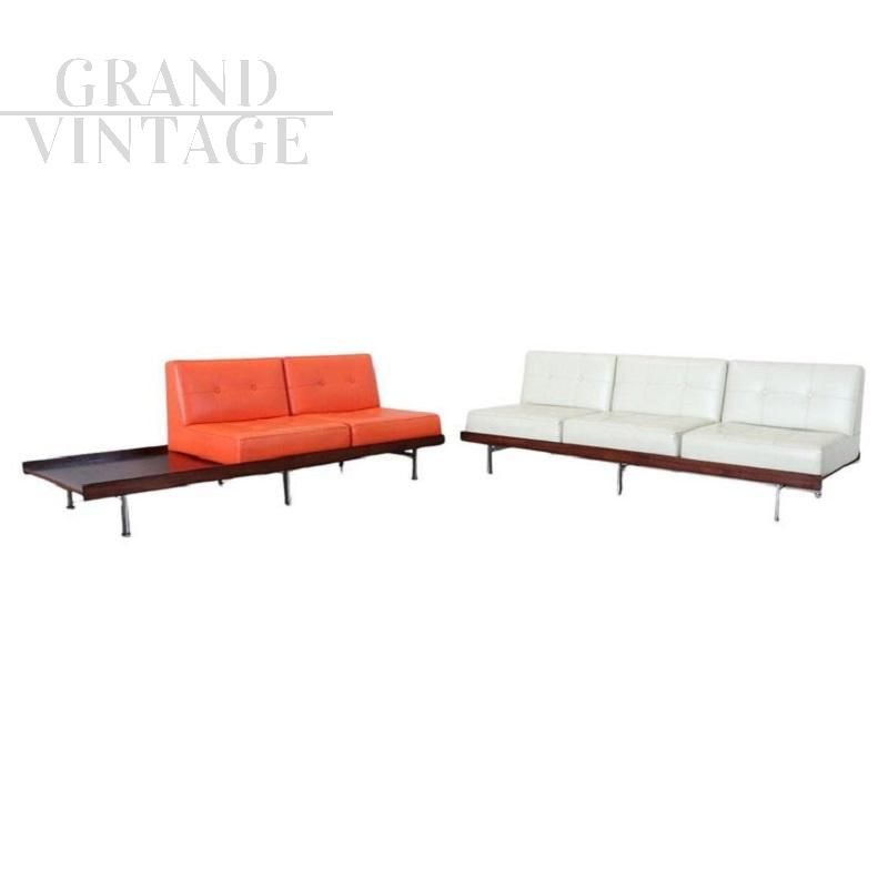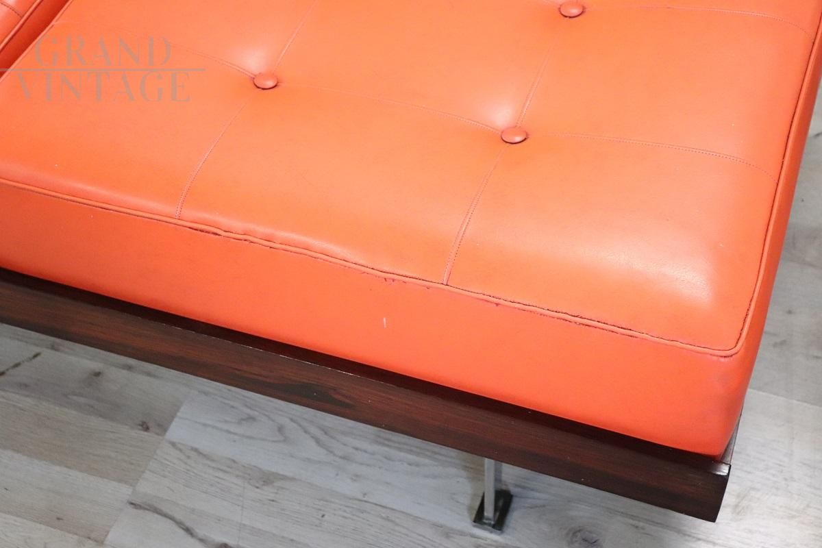 Saporiti sofa set in white and orange eco-leather, Italy 1960s