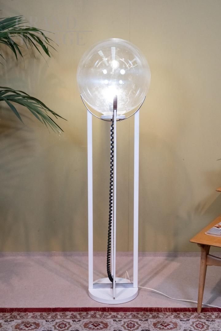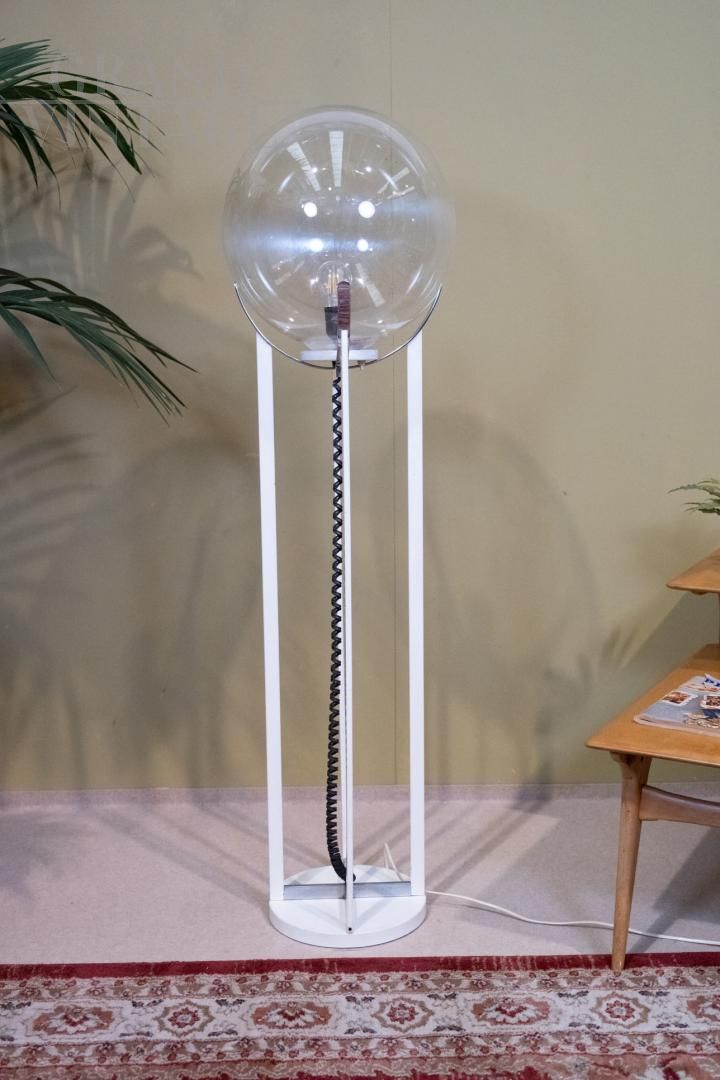 70s Pop Futurism. With its spherical shape and lines inspired by the planets, this “Saturn” style floor lamp is an icon of the Space Age. Perfect for advertising sets, avant-garde design environments or interiors that evoke a cosmic and visionary aesthetic.