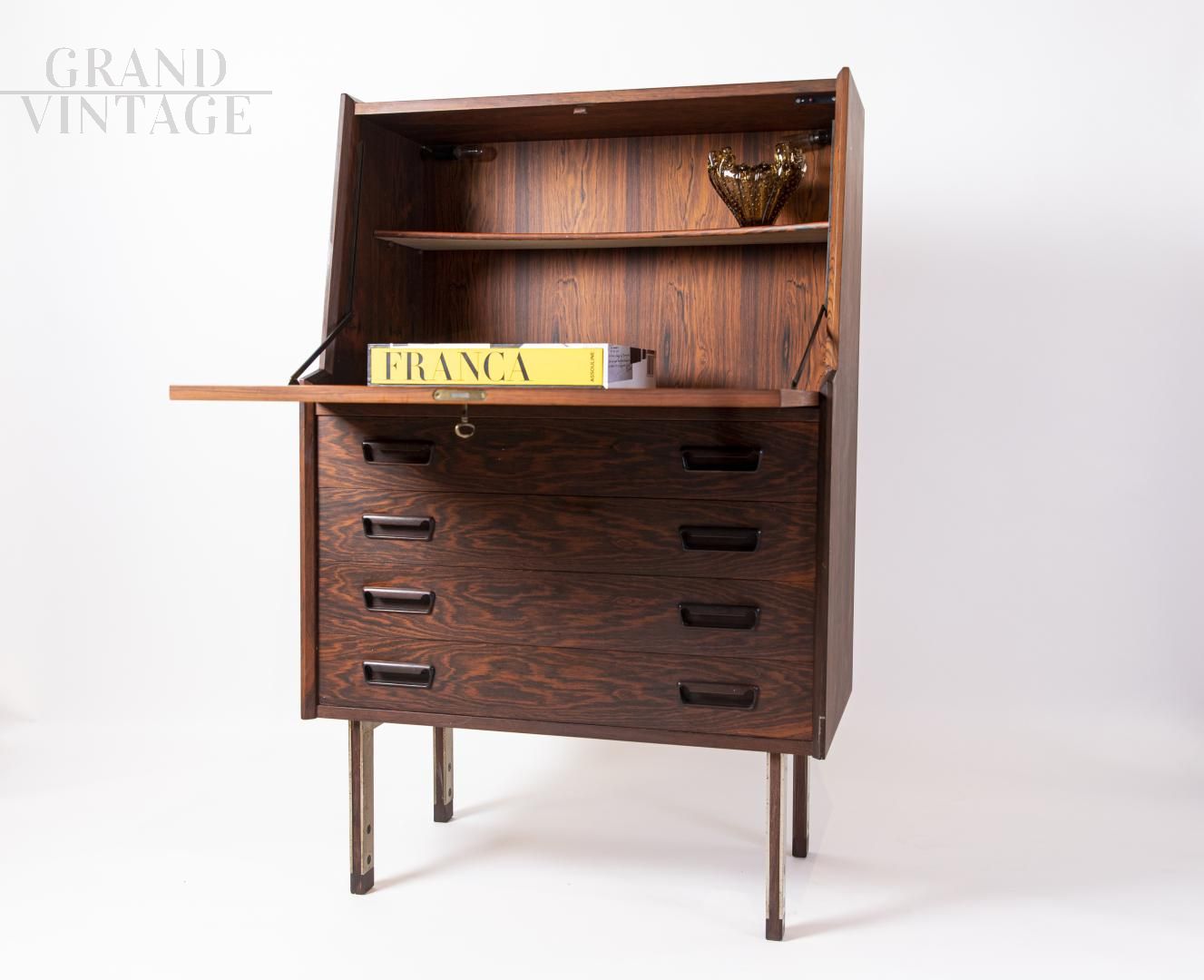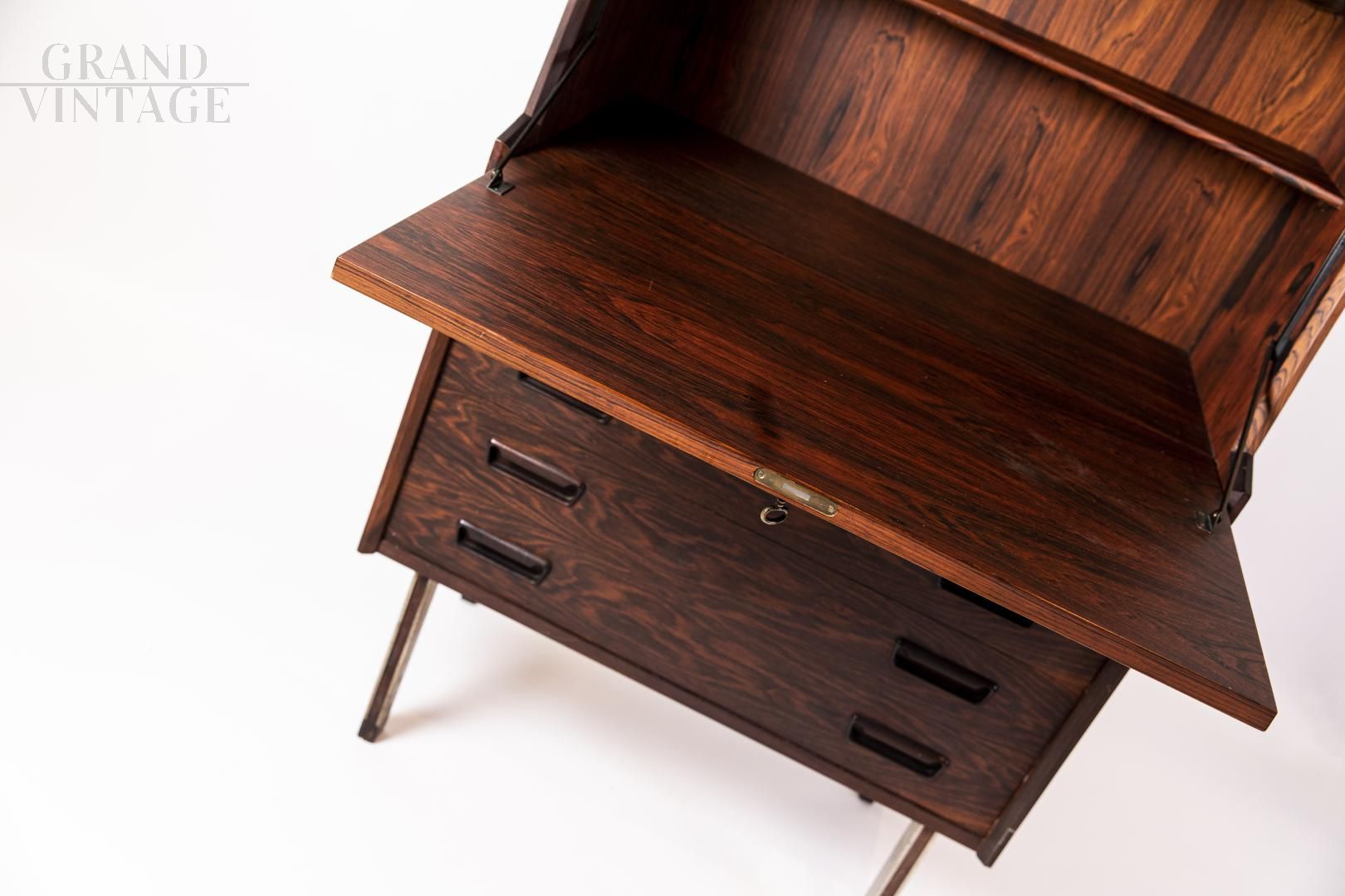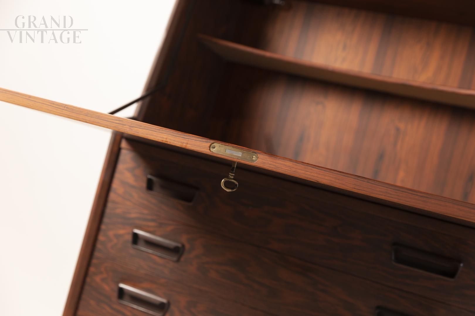 Scandinavian design secretaire dresser by Arne Wahl Iversen in rosewood, 1960s, with 4 drawers and desk compartment with drop-down opening, complete with key.