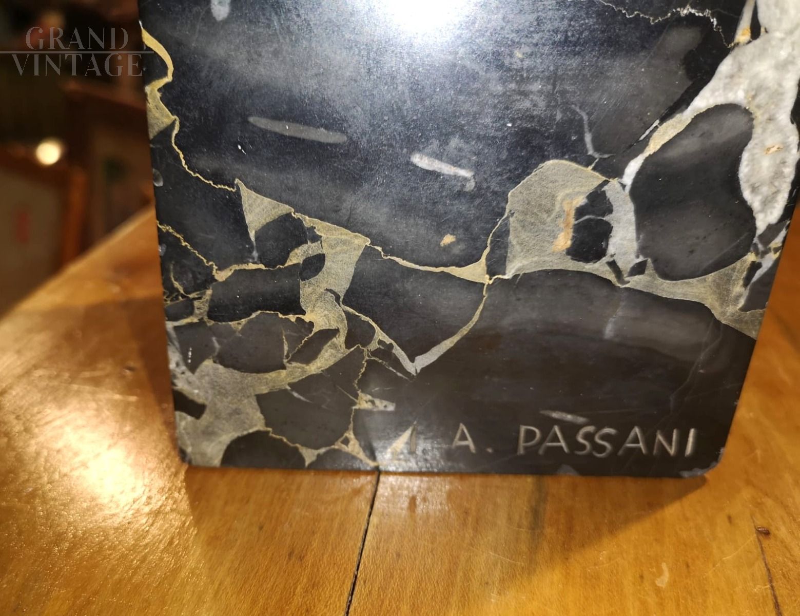 Sculpture with a woman's face in terracotta with a black marble base signed by Italo Amerigo Passani, an Italian liberty sculptor. The peculiarity of this sculpture is its hollow interior, which allows the observer to peer into the interior of the sculpture from its eyes.