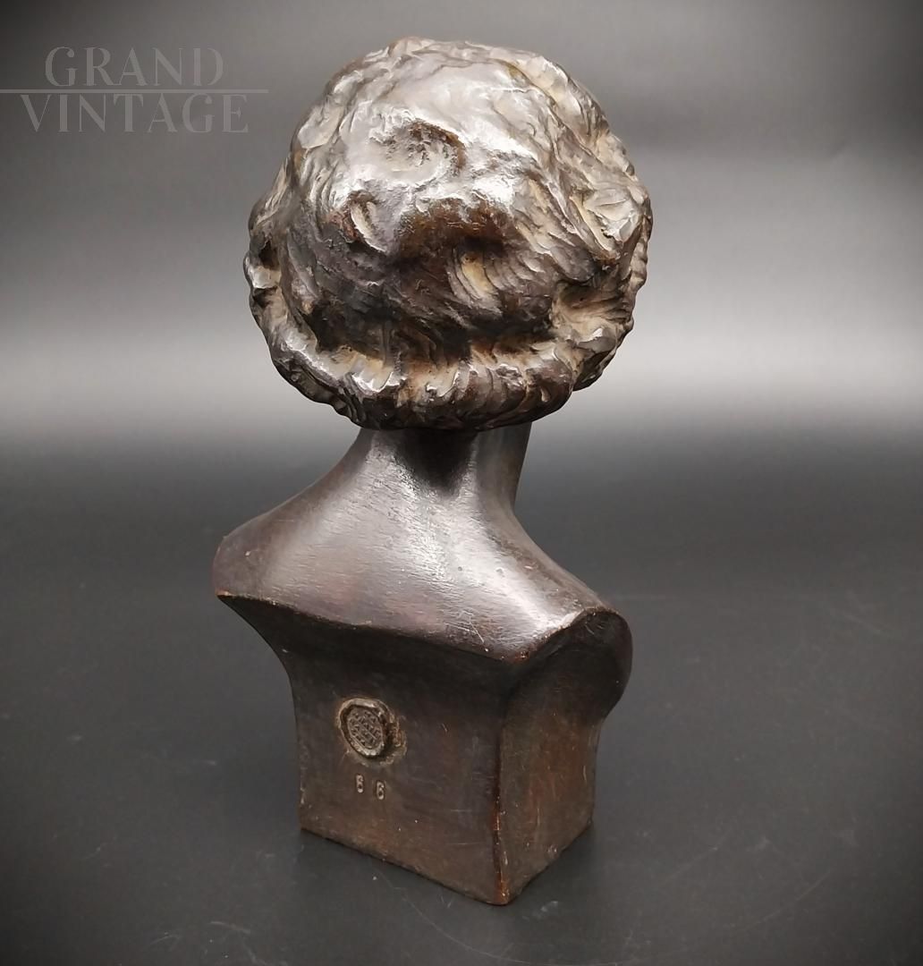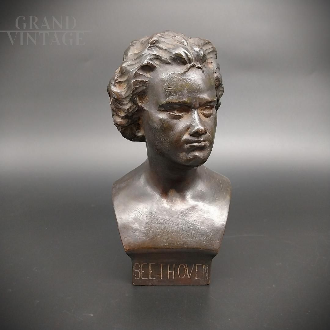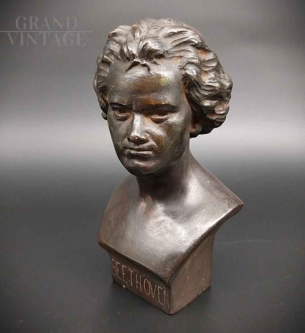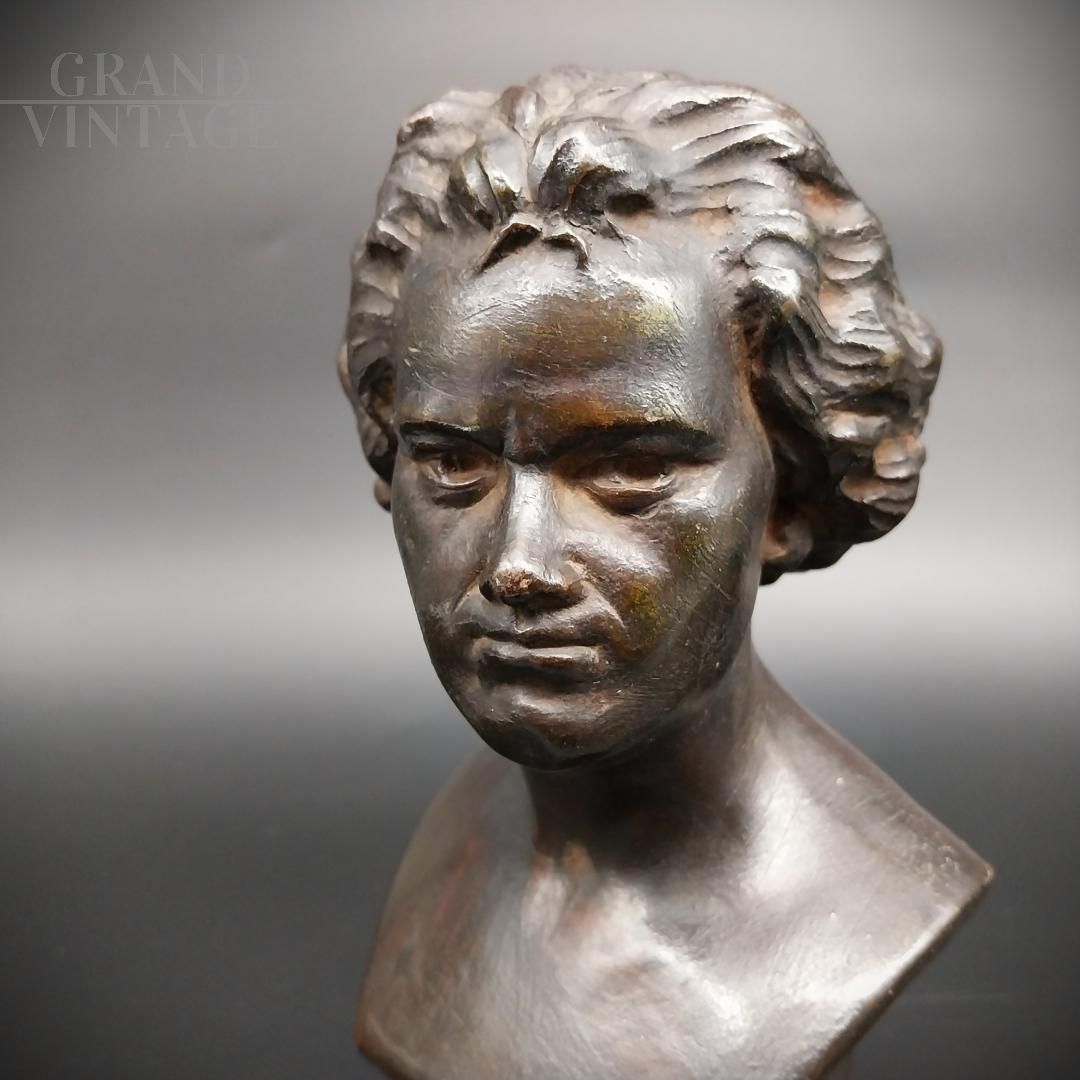 A beautiful patinated terracotta bust of Ludwig van Beethoven, dating back to around 1900, from the famous Italian manufacturer Signa. It is in excellent condition. Dimensions: 9 x 7 cm, height 18.5 cm.