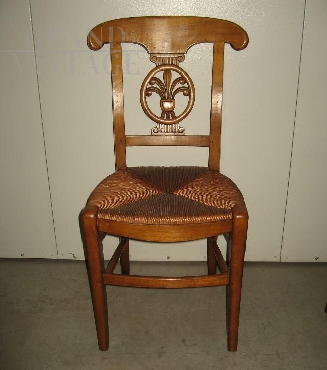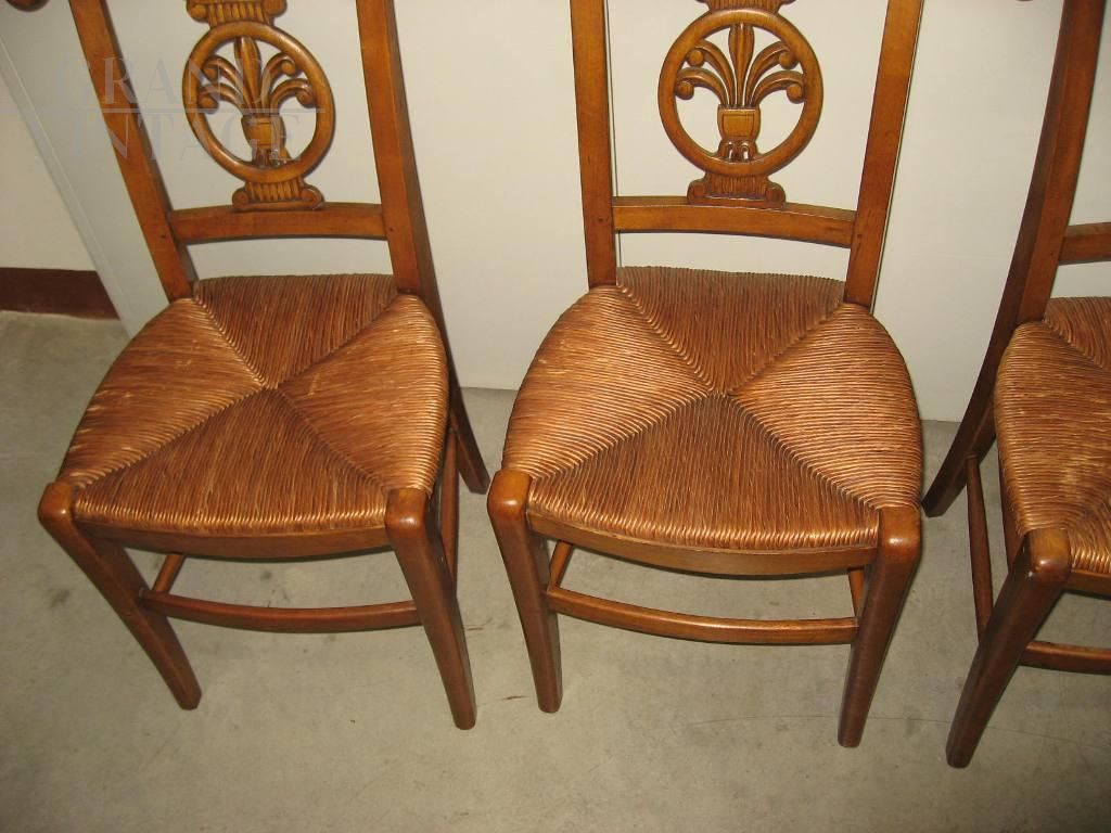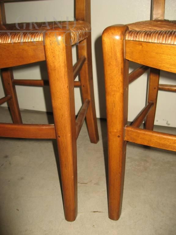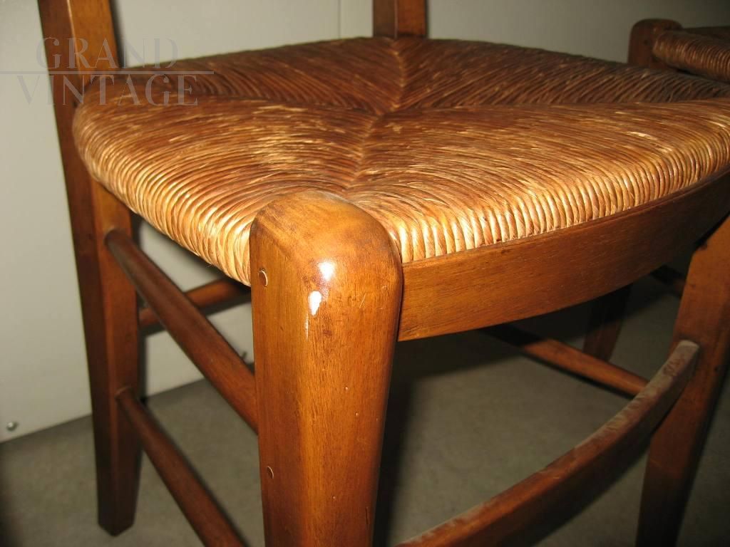 Set of 4 vintage straw chairs in walnut, never used