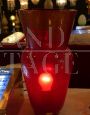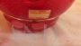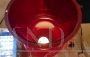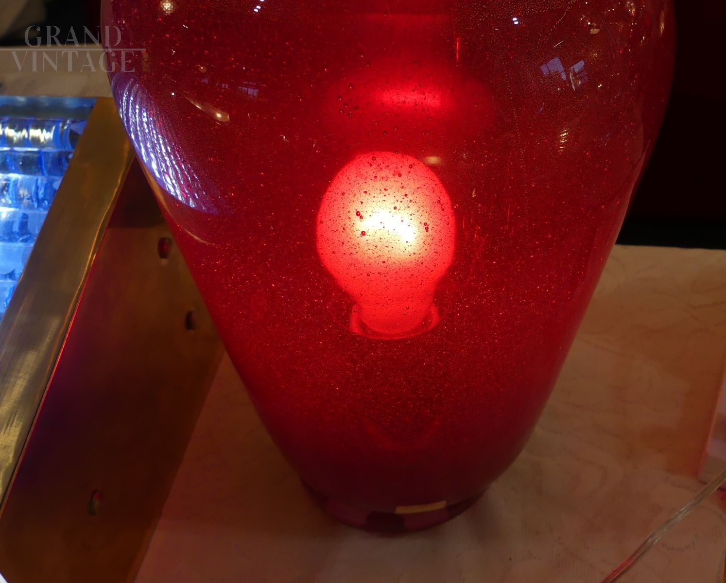 The lamp is a red Murano glass vase, with small precious gold leaf suspensions, clearly visible in the photo.