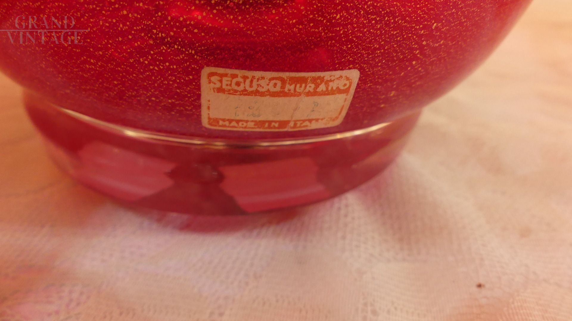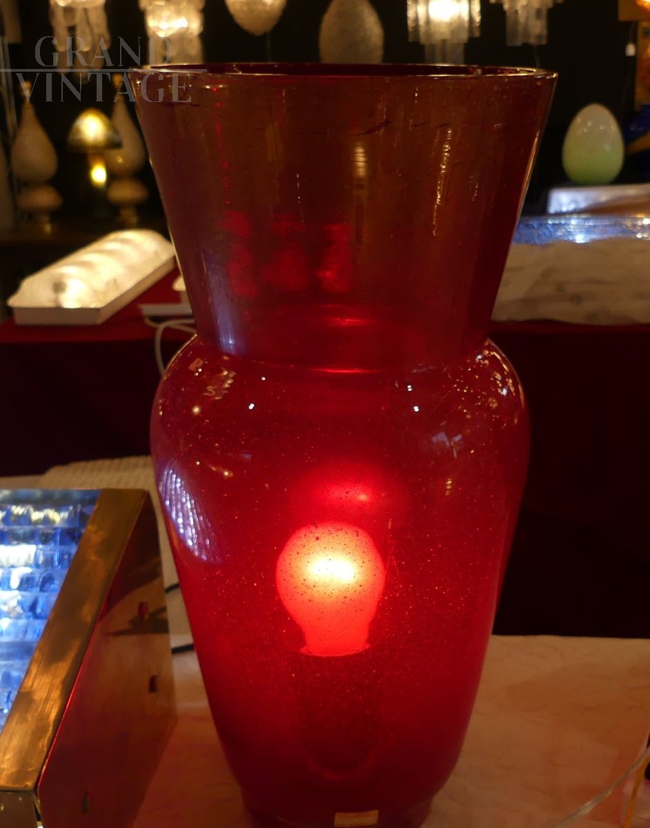 Lampada a vaso rosso Seguso in Vetro di Murano