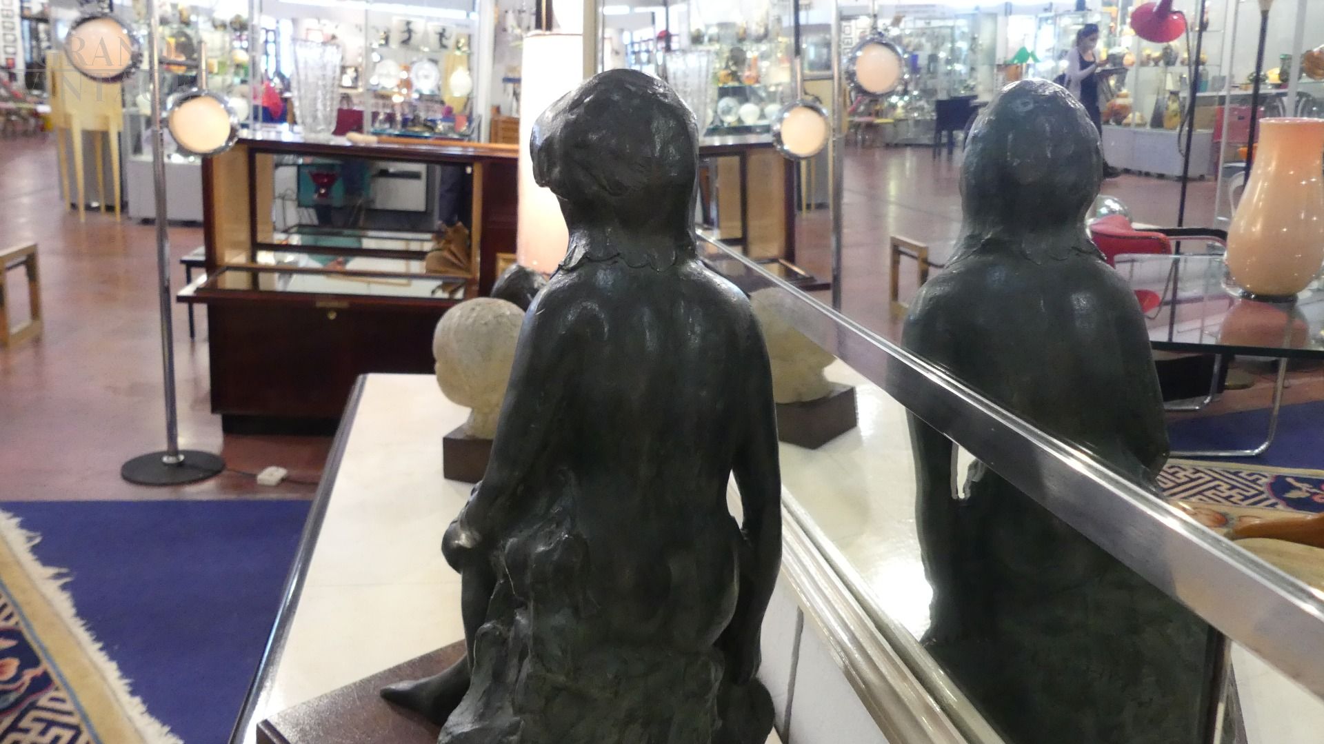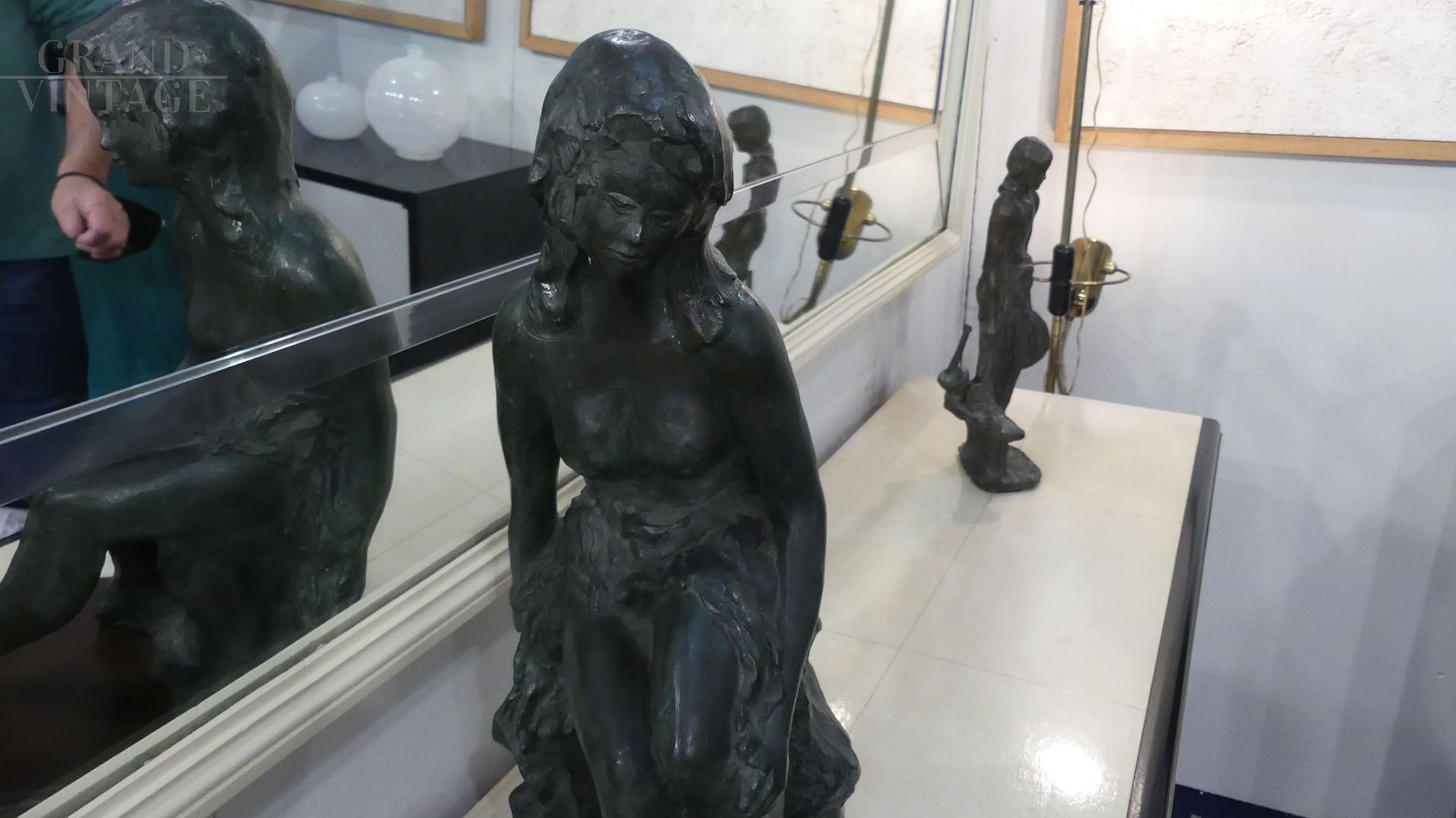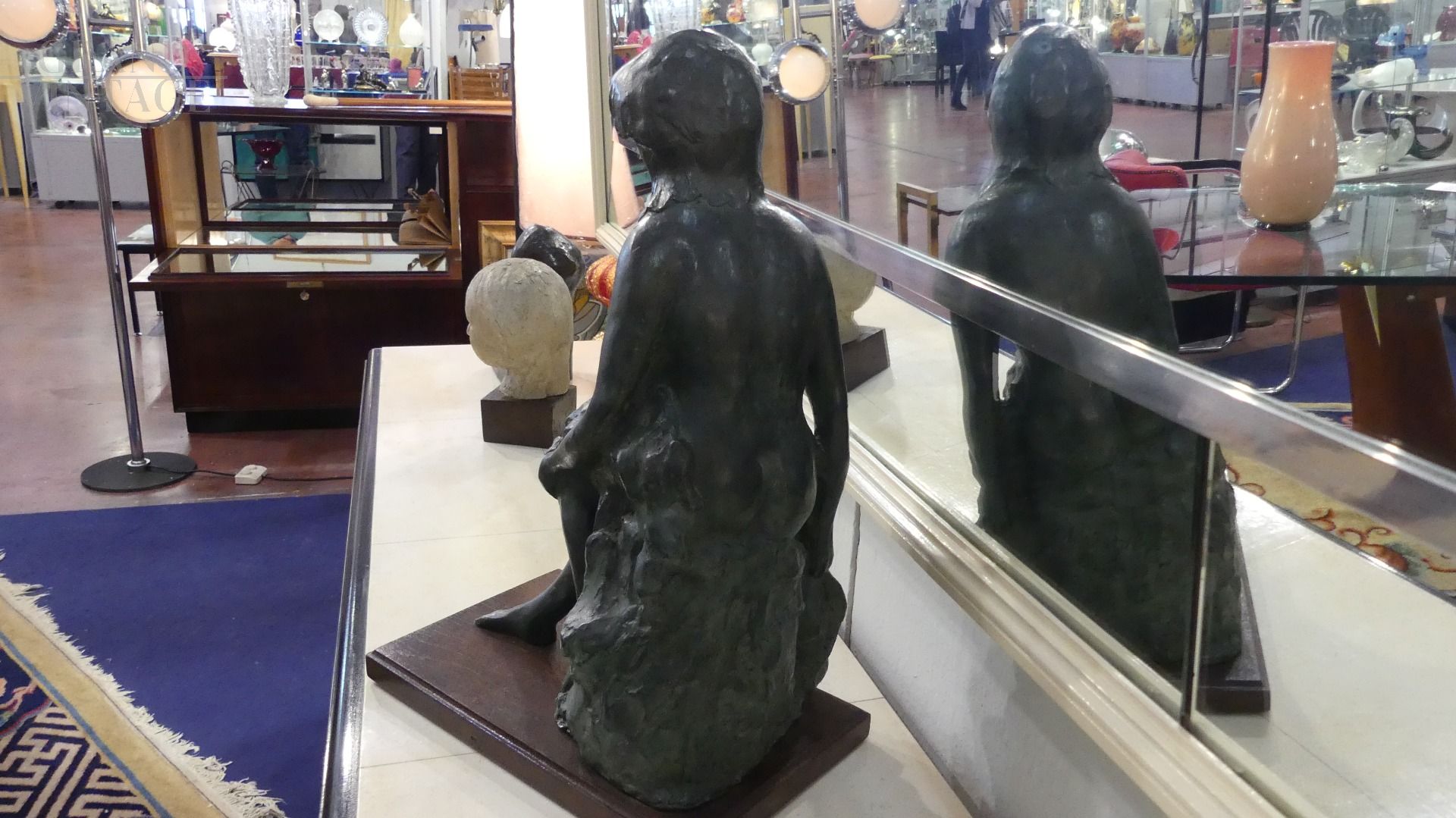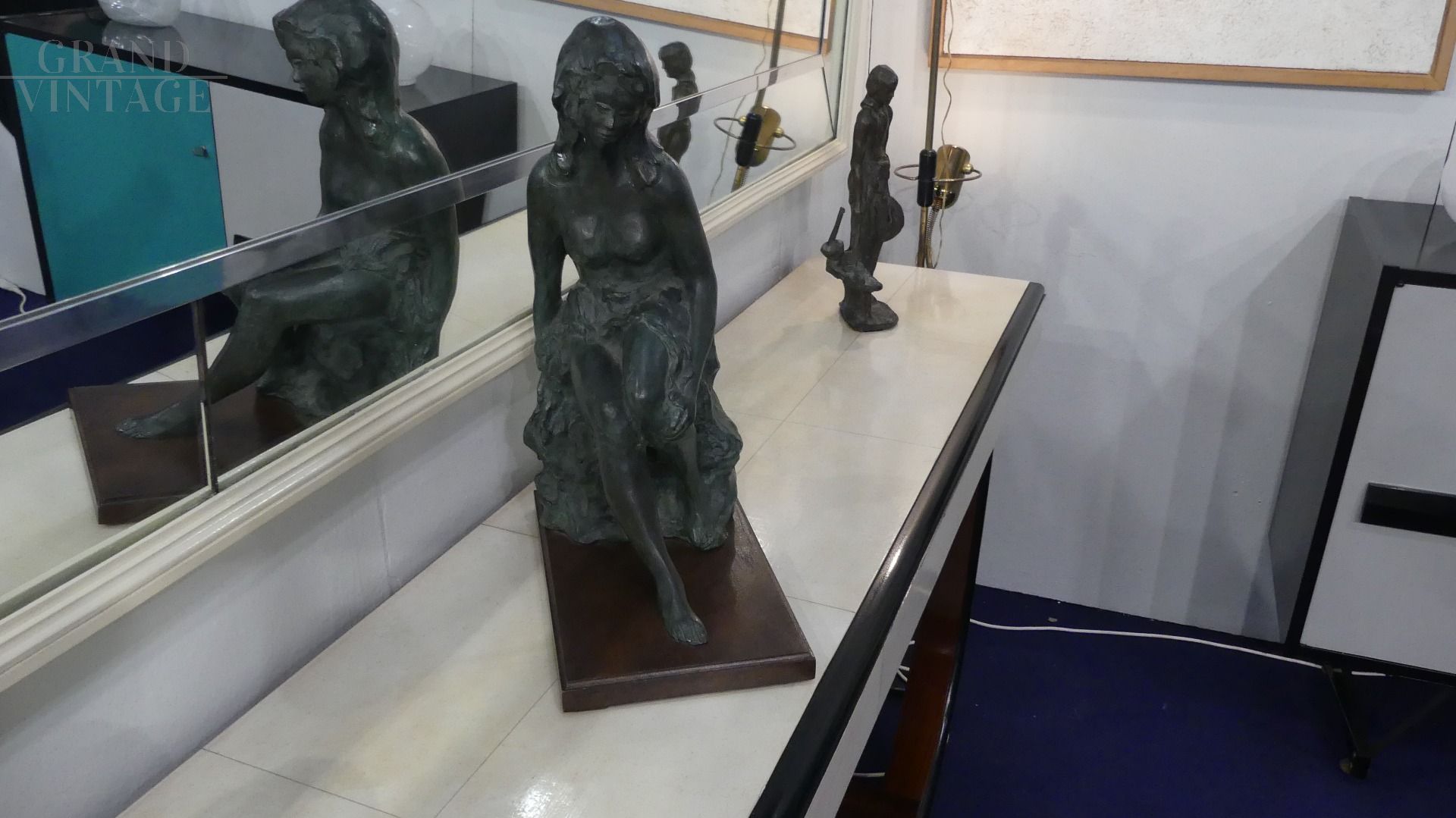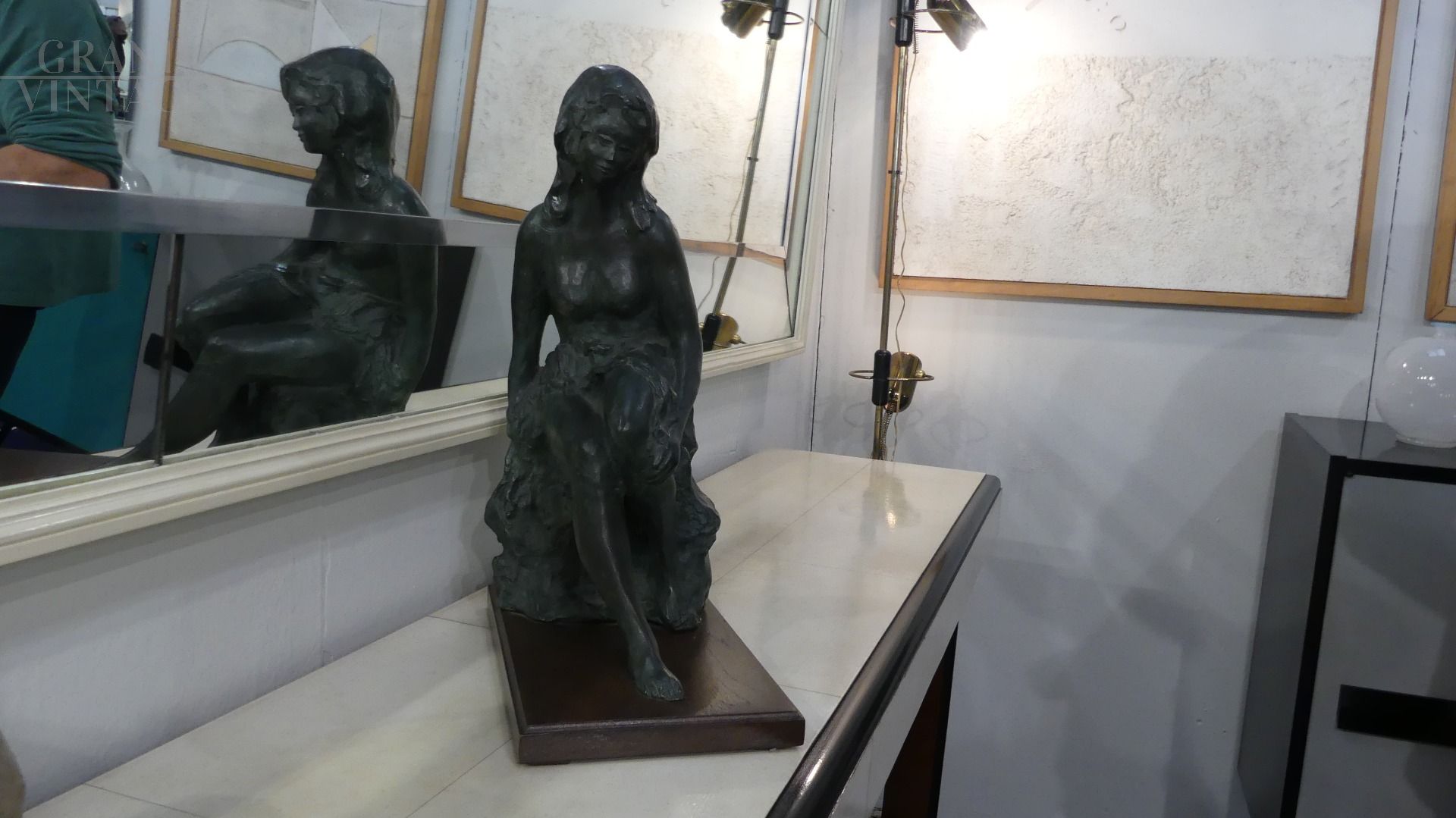 Maiden - sculpture by Pier Romano Selvestrel in bronze, resting on a wooden base.