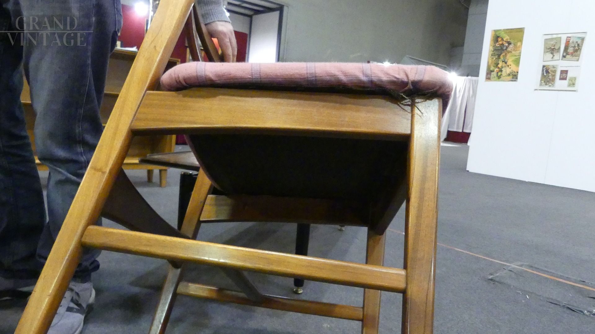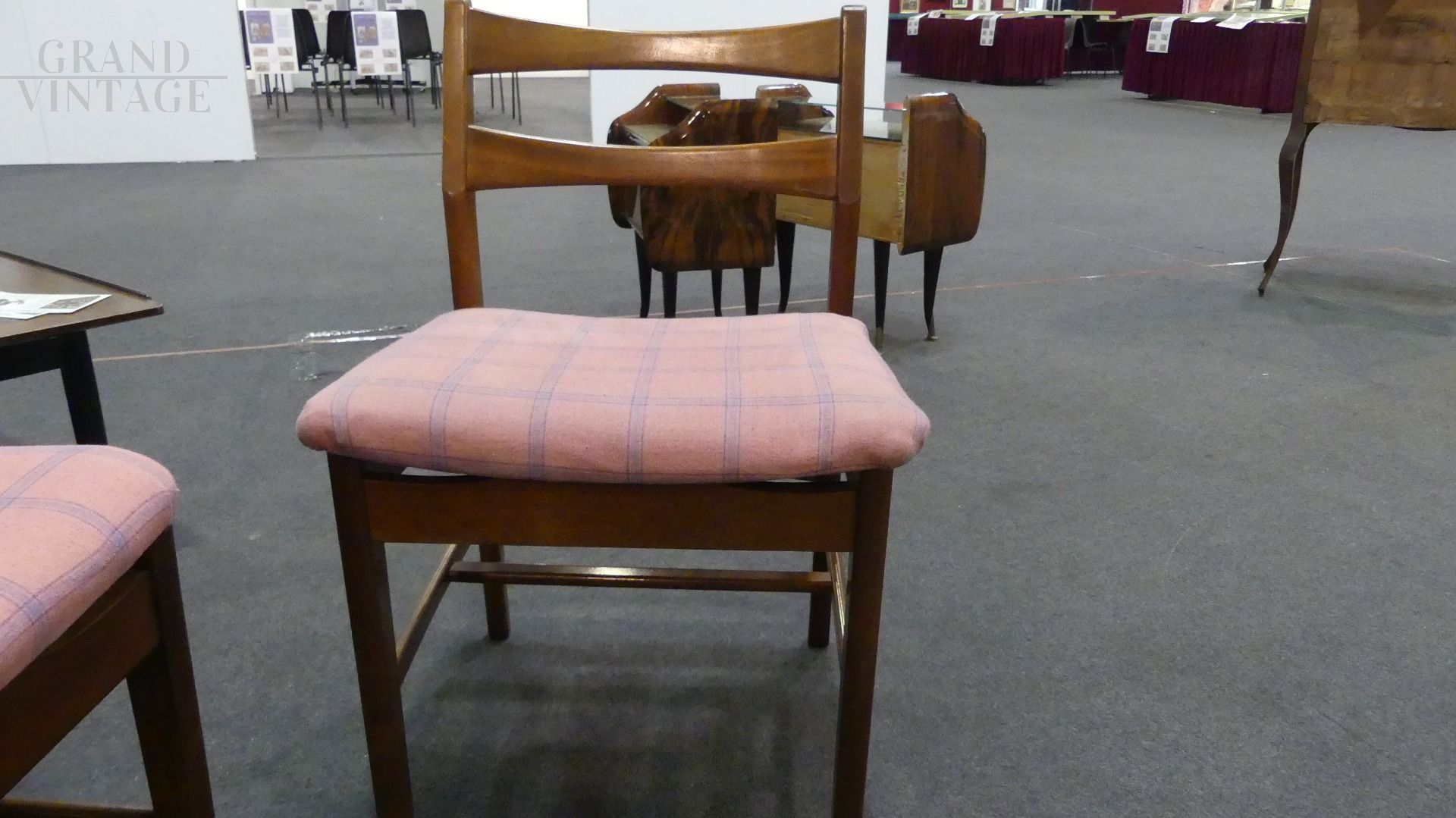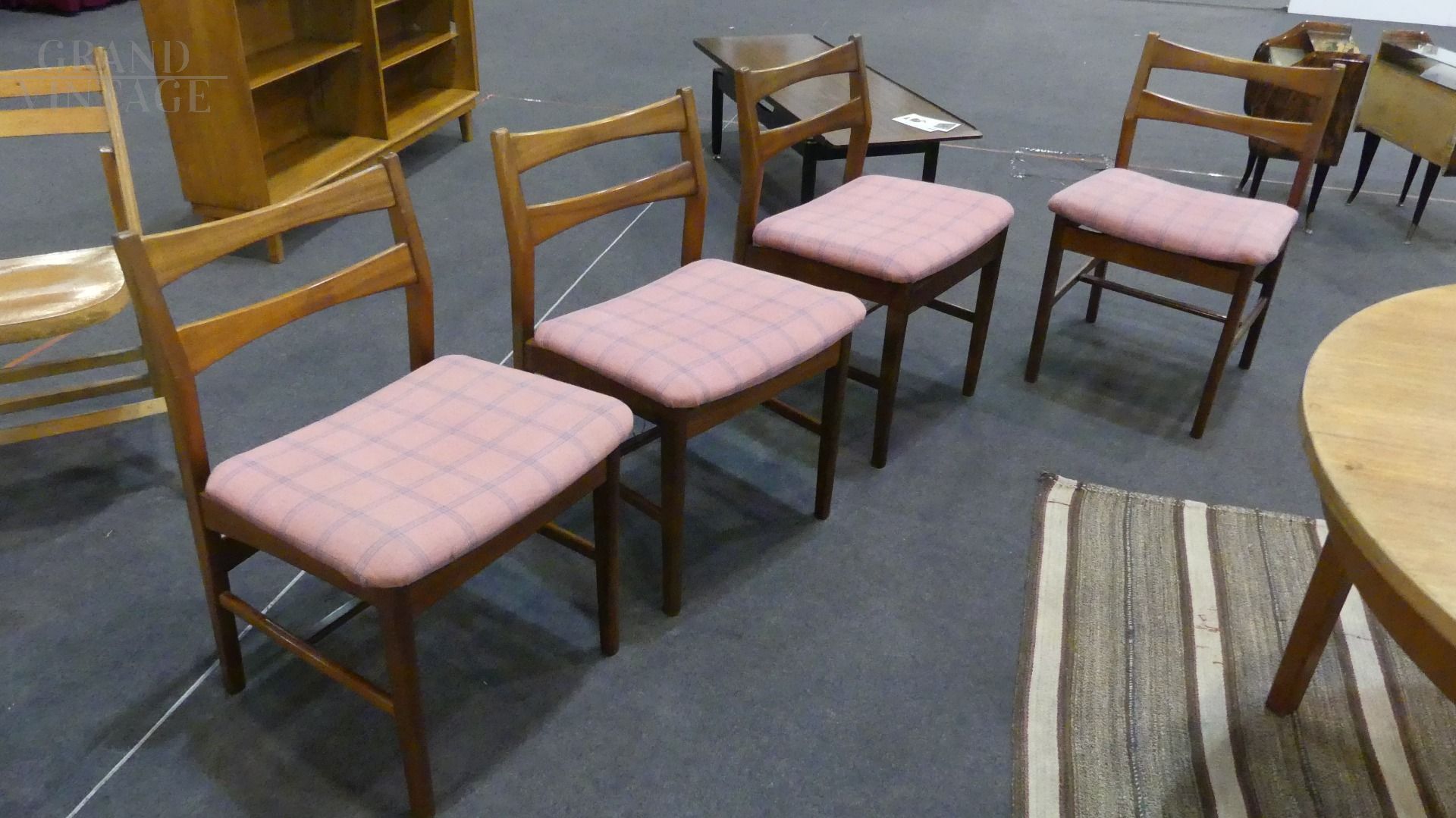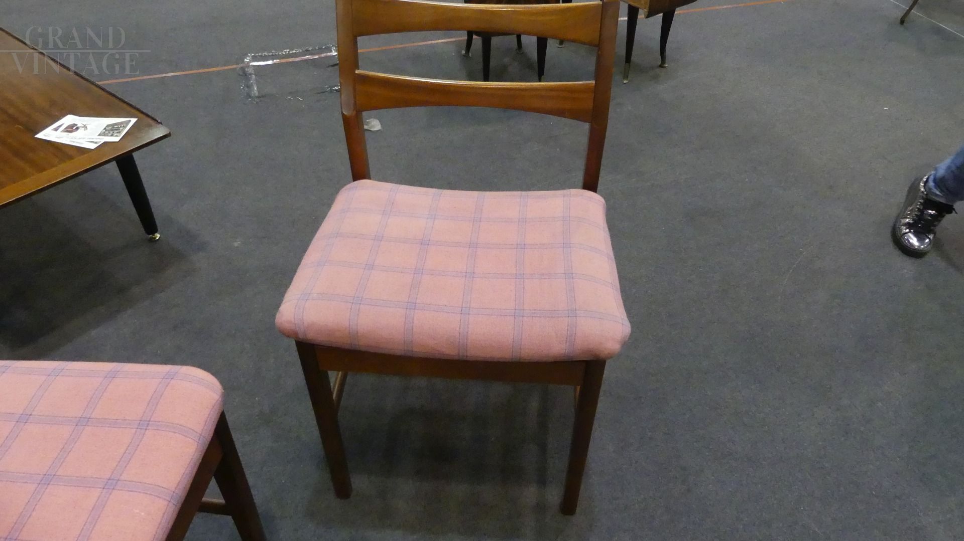 4 vintage chairs of English origin in teak wood, 1970s, padded and covered with original fabric.
