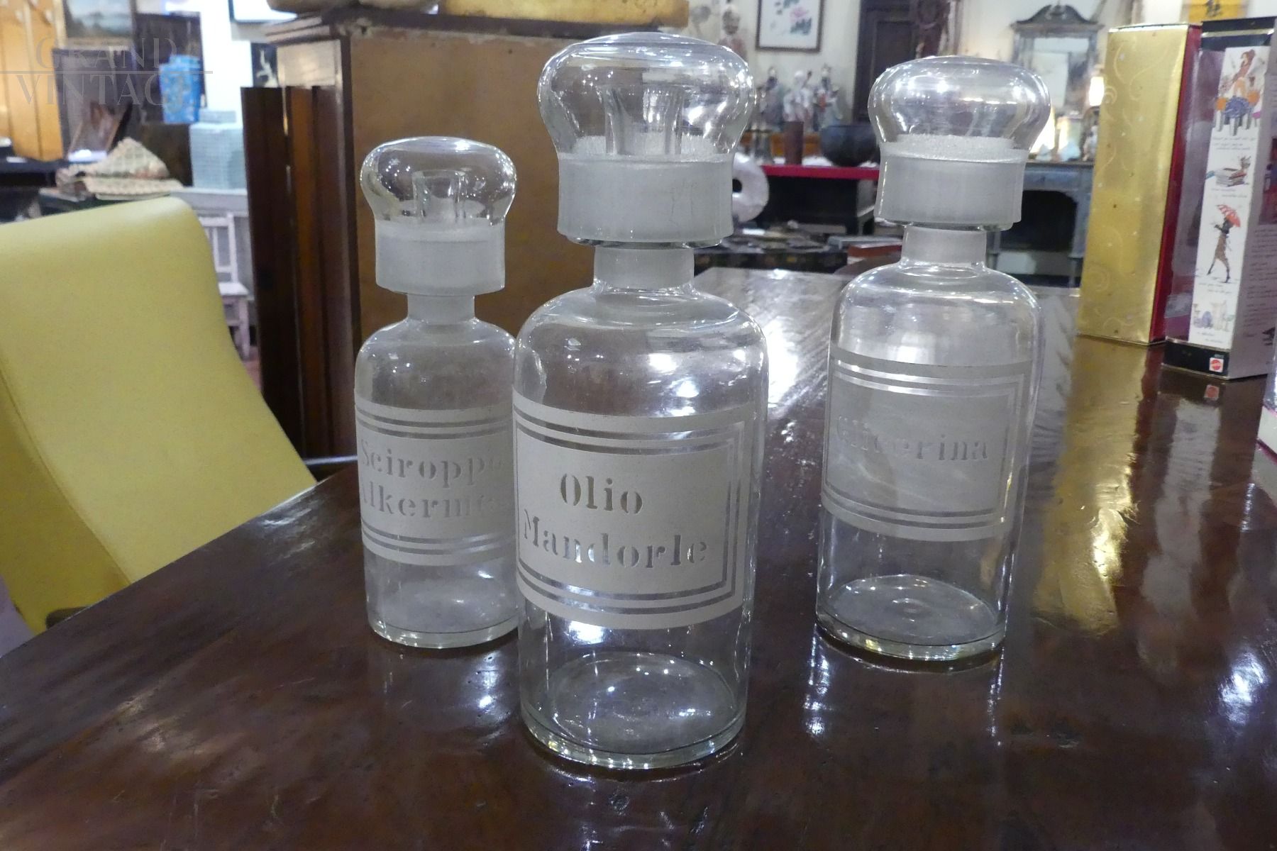 Set of 3 antique glass apothecary jars, 19th century Italy