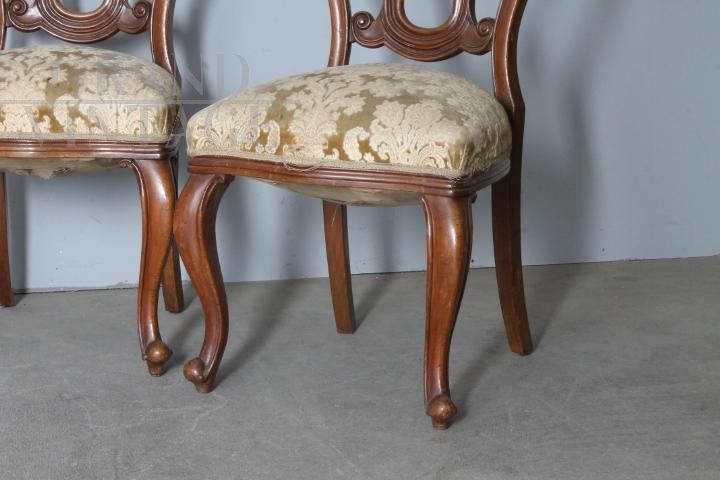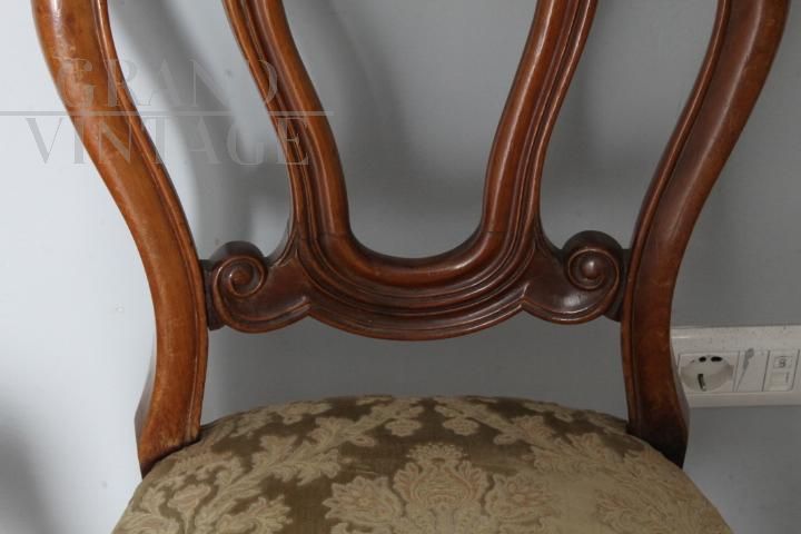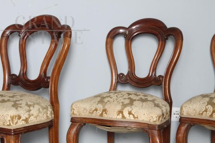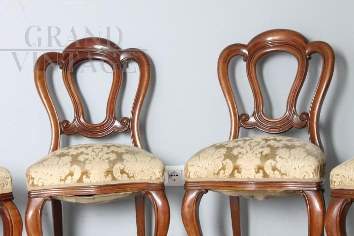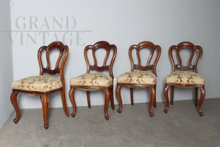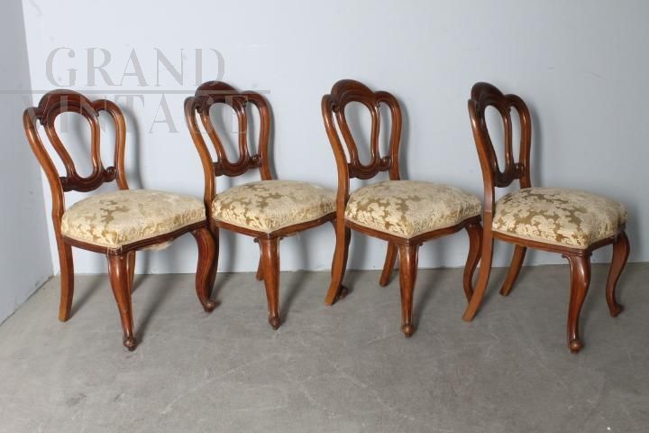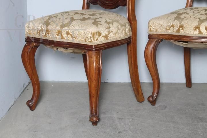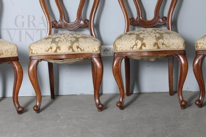 Set of 4 antique Louis Philippe chairs in walnut with carved backrest, Italy 1850s
