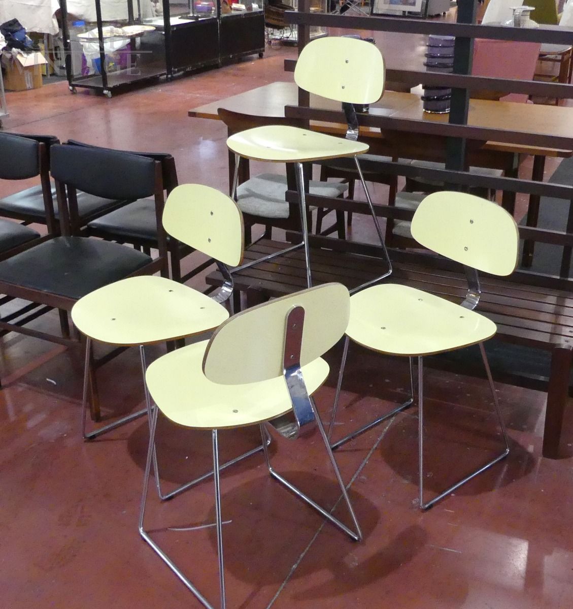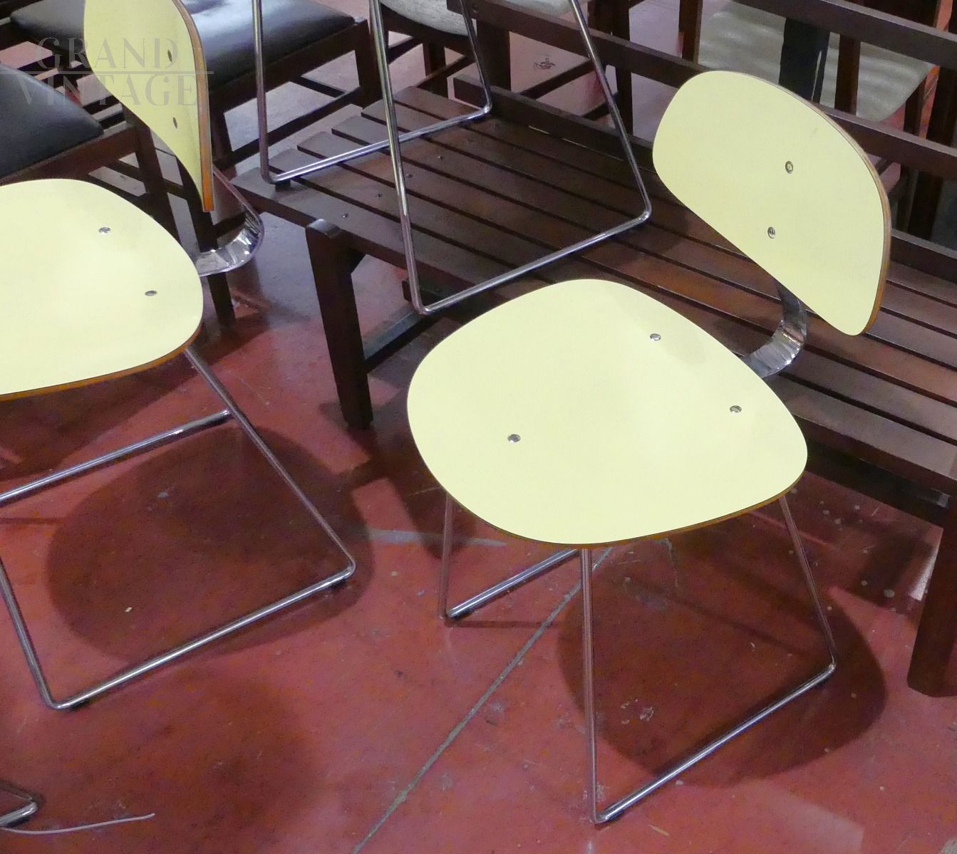 Set di 4 sedie Georges Coslin in metallo e formica gialla