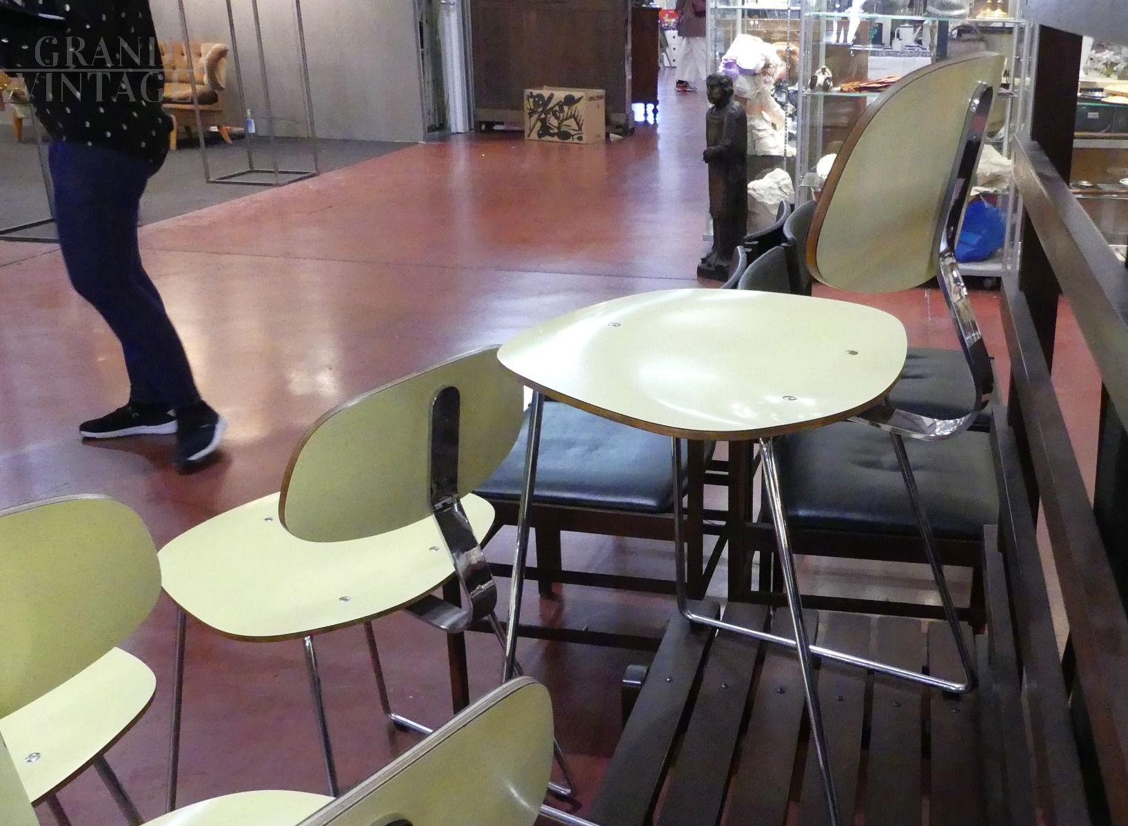 Set of 4 design chairs by Georges Coslin in metal and yellow formica