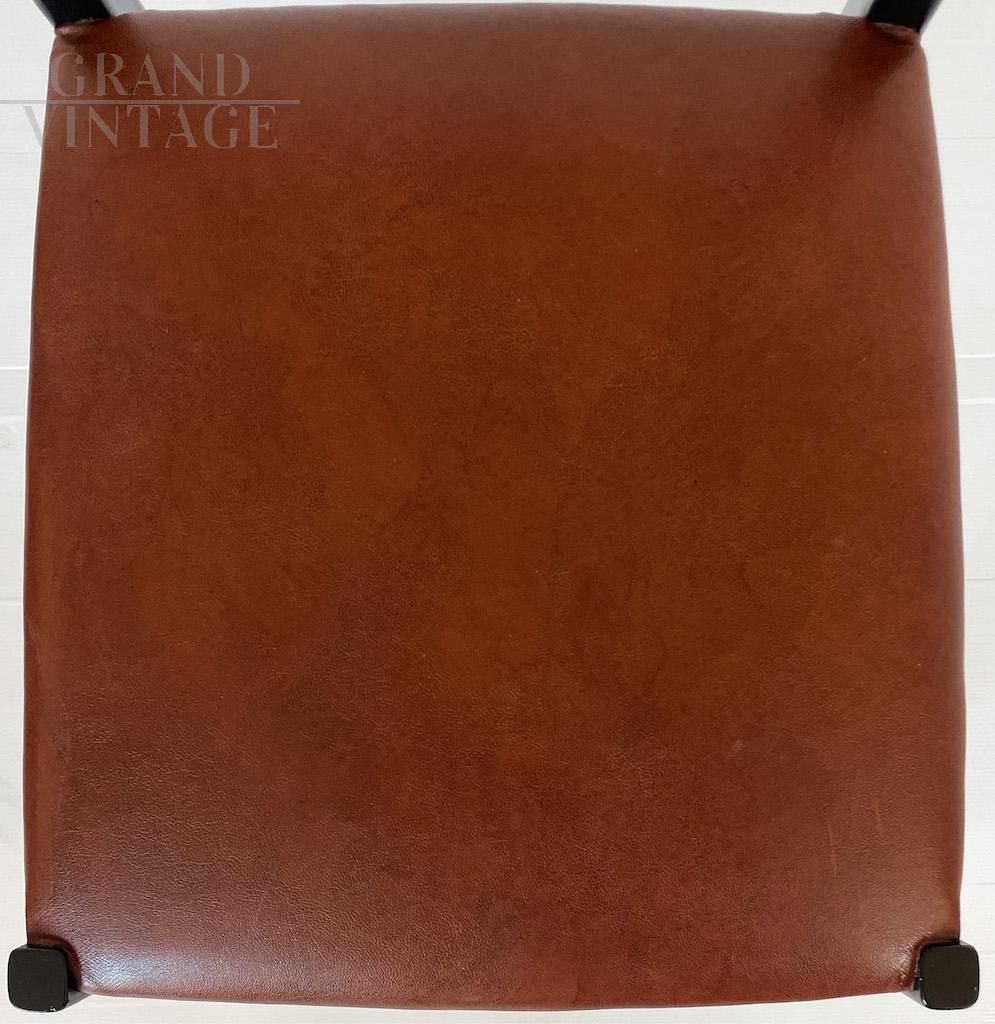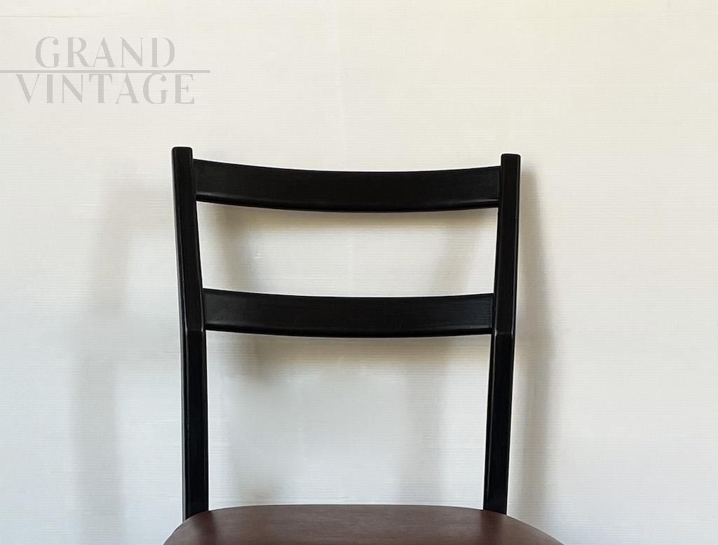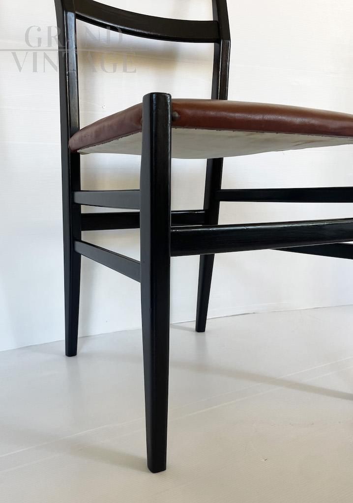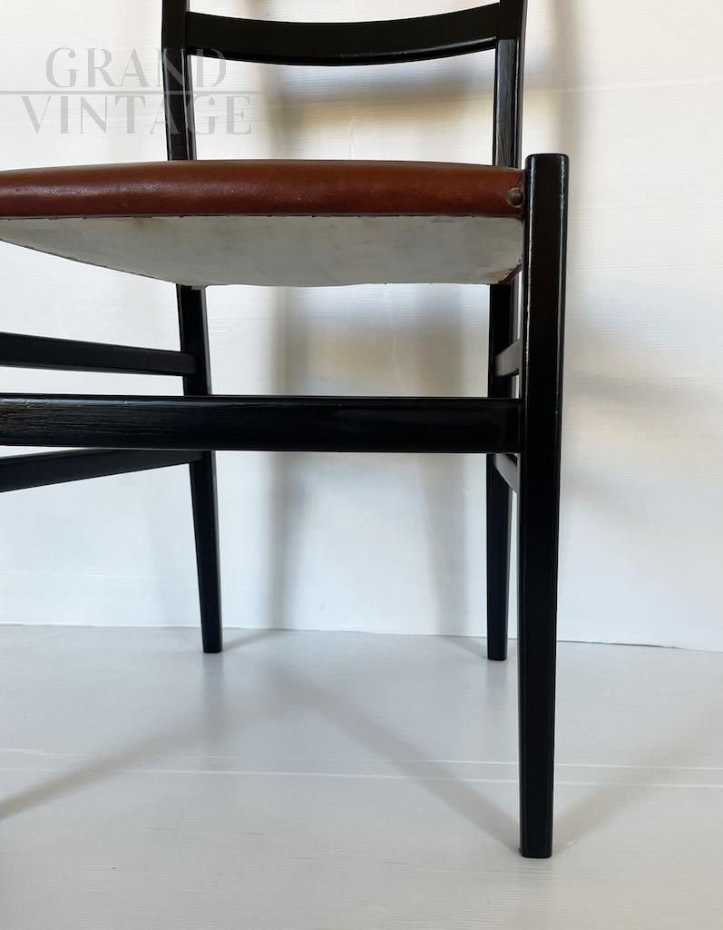 Set of 4 original Leggera chairs by Gio Ponti for Cassina from the 1950s, in perfect condition, with structure entirely in black lacquered ash wood and seat upholstery in original burgundy-brick colored skai from the time. This chair model is a true icon of Italian design.