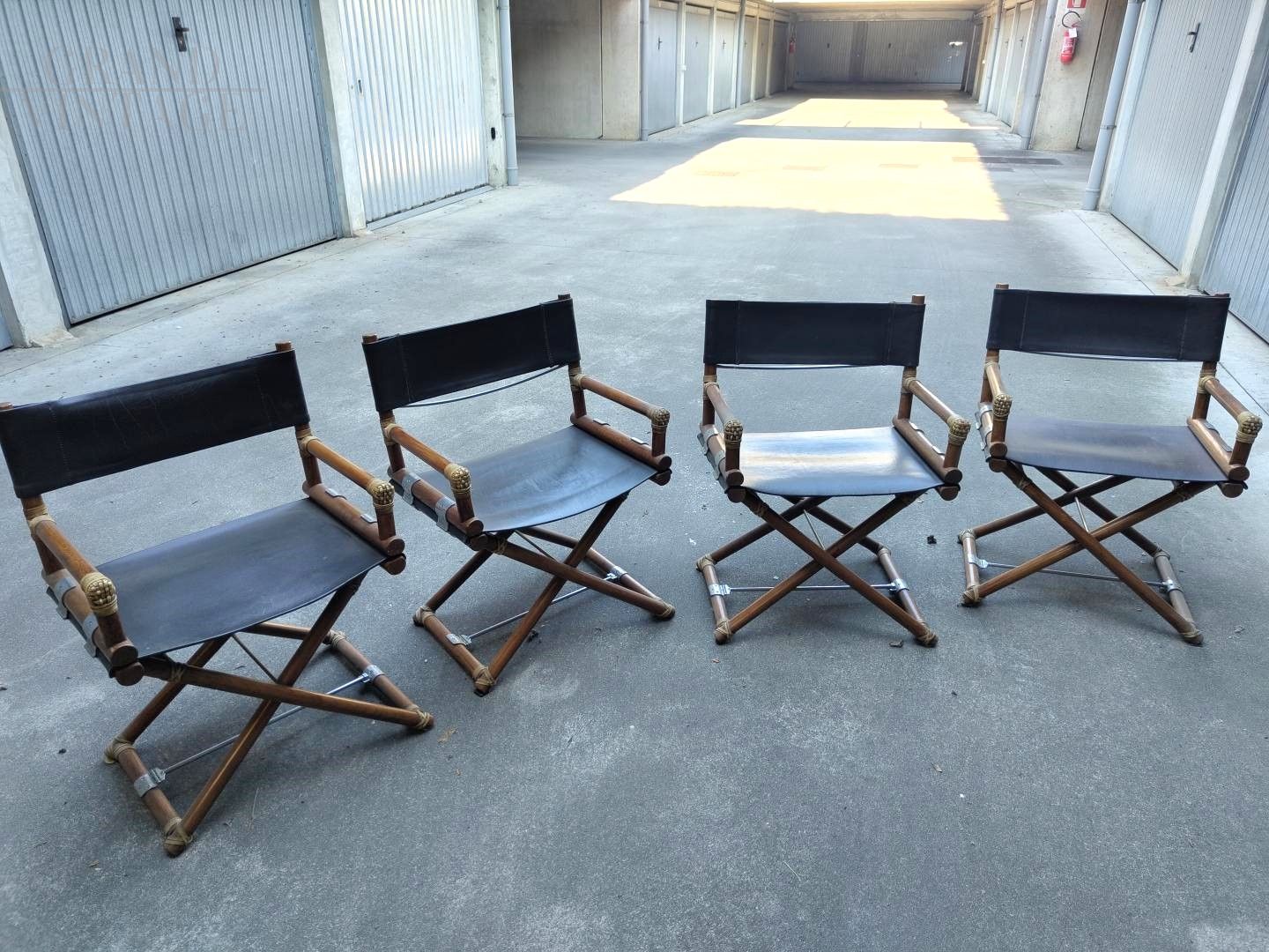 Set of 4 Lyda Levi McGuire style director's chairs in wood and leather