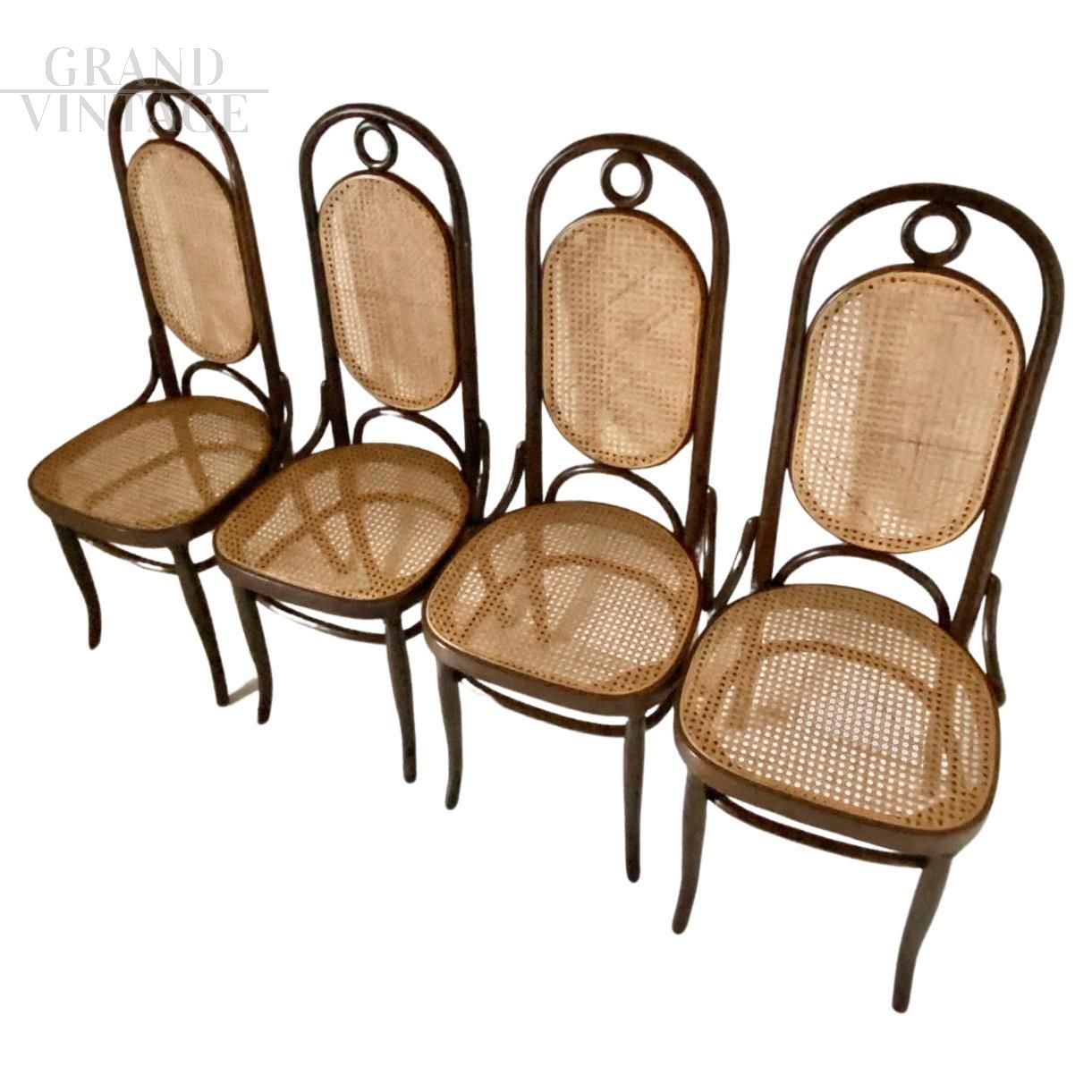 Set of 4 Thonet 207 Long John chairs in bent walnut, 1970s