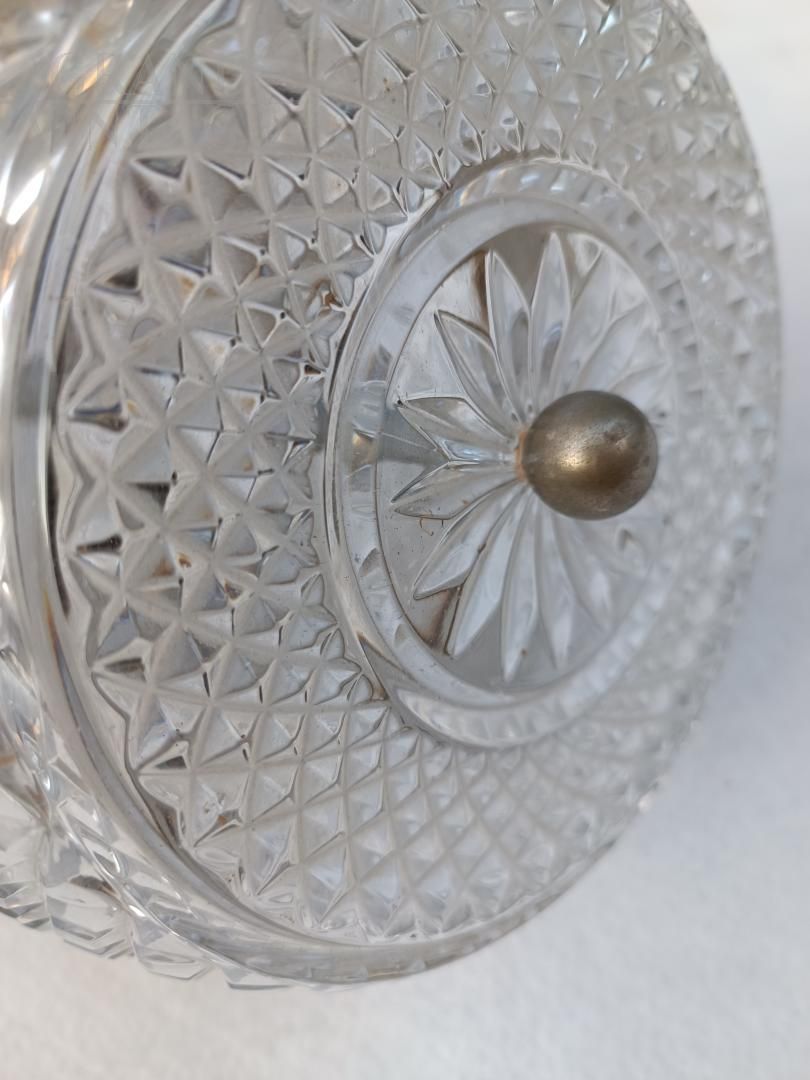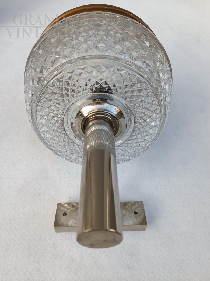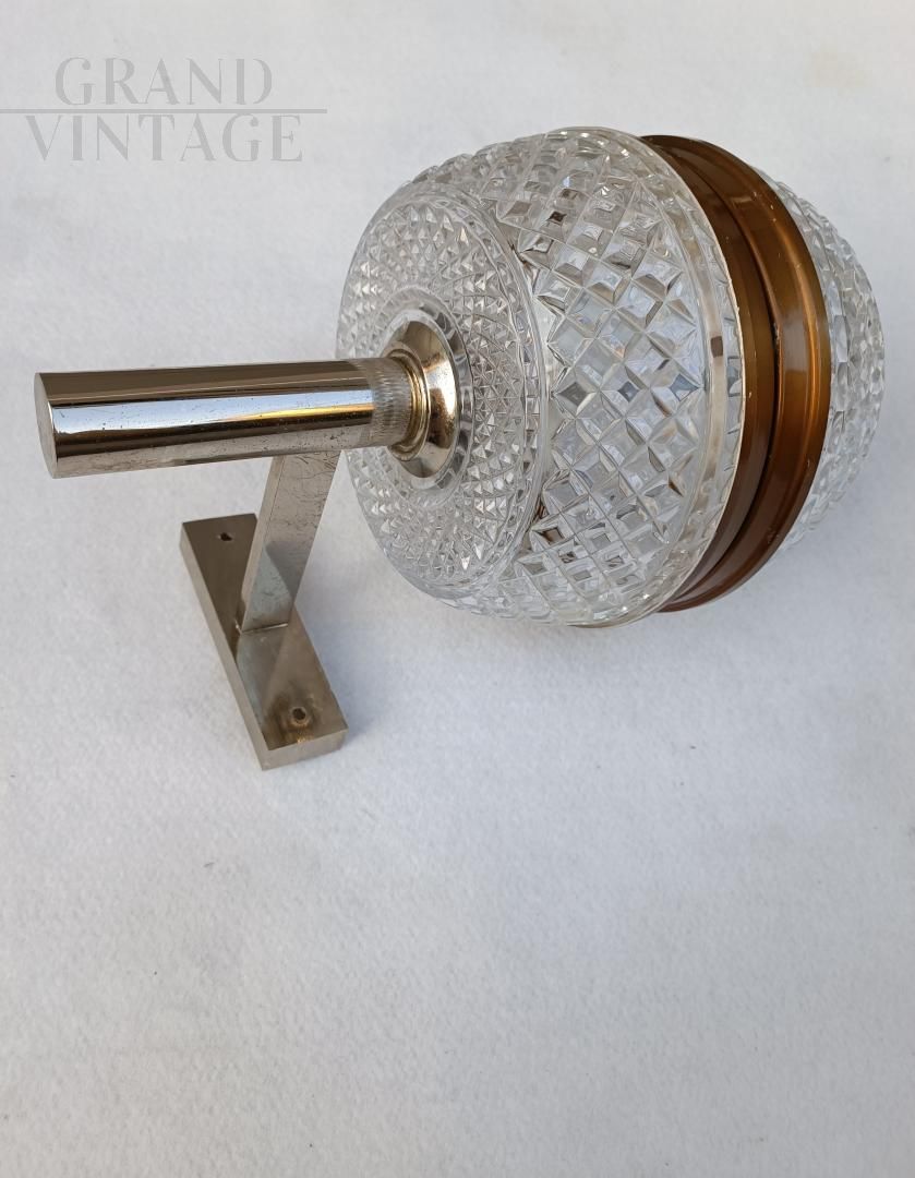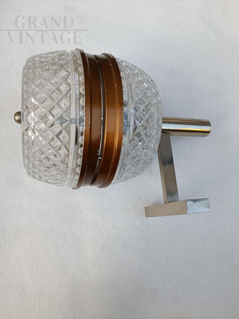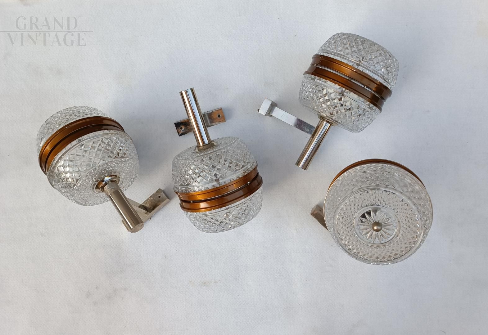 Set of 4 vintage wall lights in rostrum glass with diamond design, central band in gilded metal and supporting structure in chromed metal.